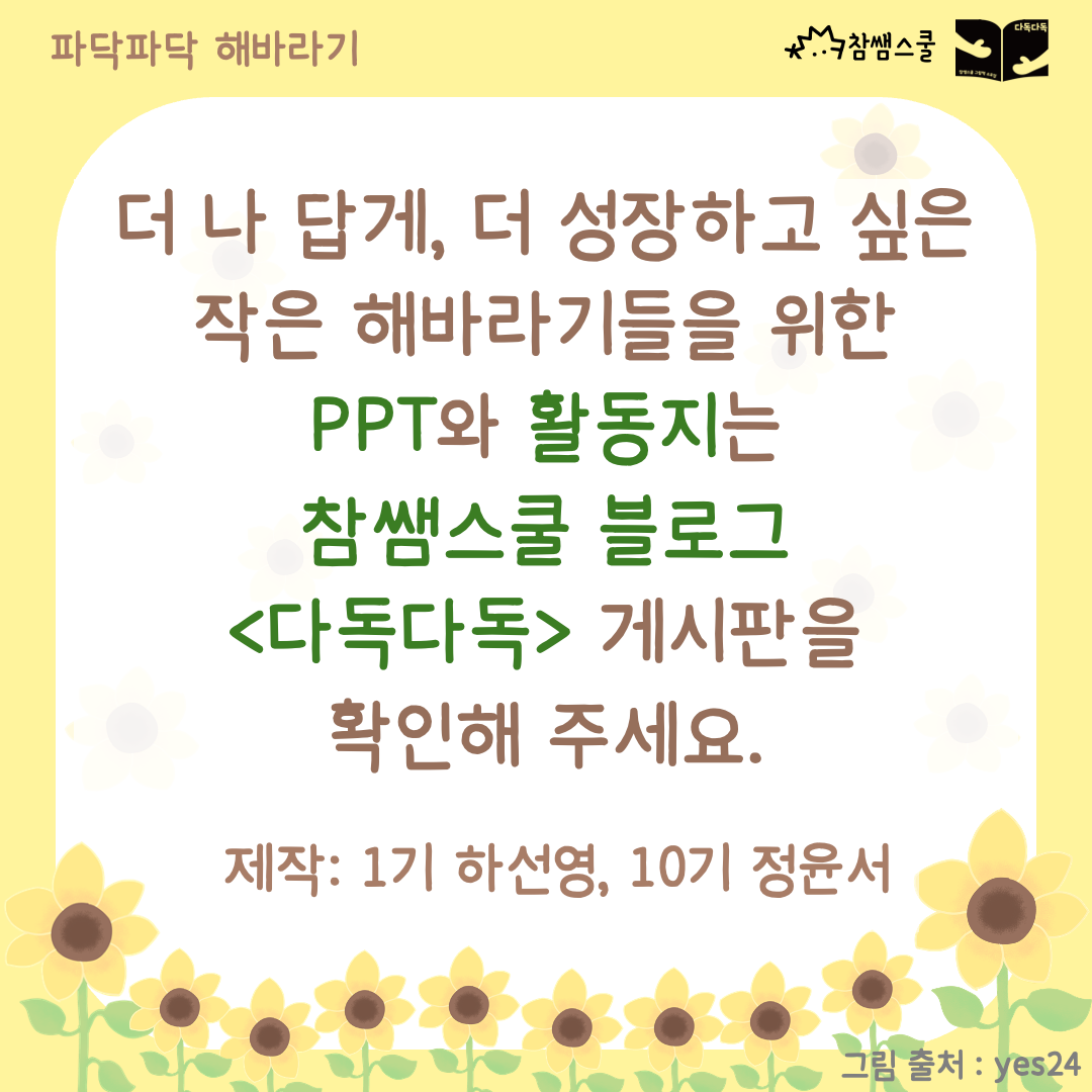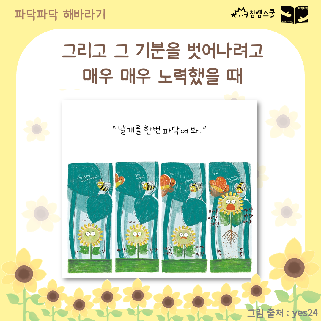 작은 해바라기처럼 파닥파닥 날갯짓을 하고 있는지 이야기 나눠보려고 해요.