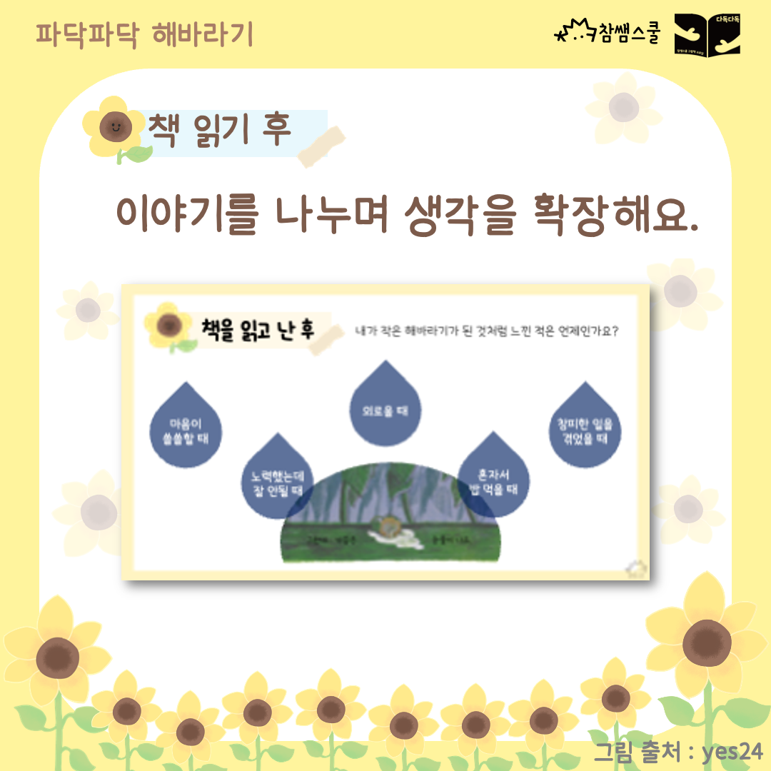 작은 해바라기를 통해 어린이들의 마음 속 이야기를 꺼낼 수 있겠죠. 💭