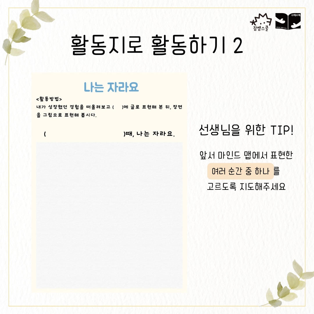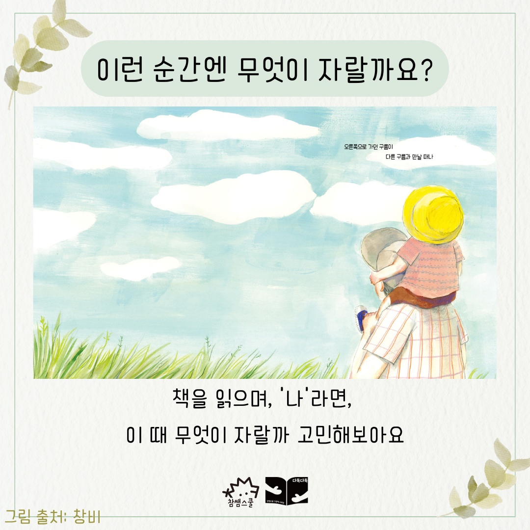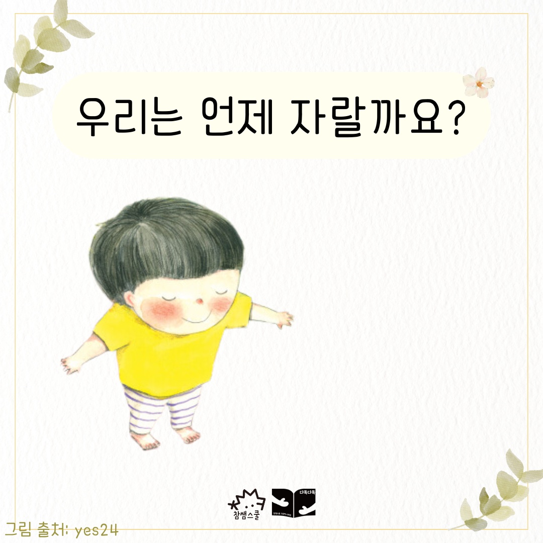 그 그림들을 보면서 무엇이 자란 것인지 이야기 나눠보아요. 그러다보면 내가 자란 순간들도 떠오를 거예요.