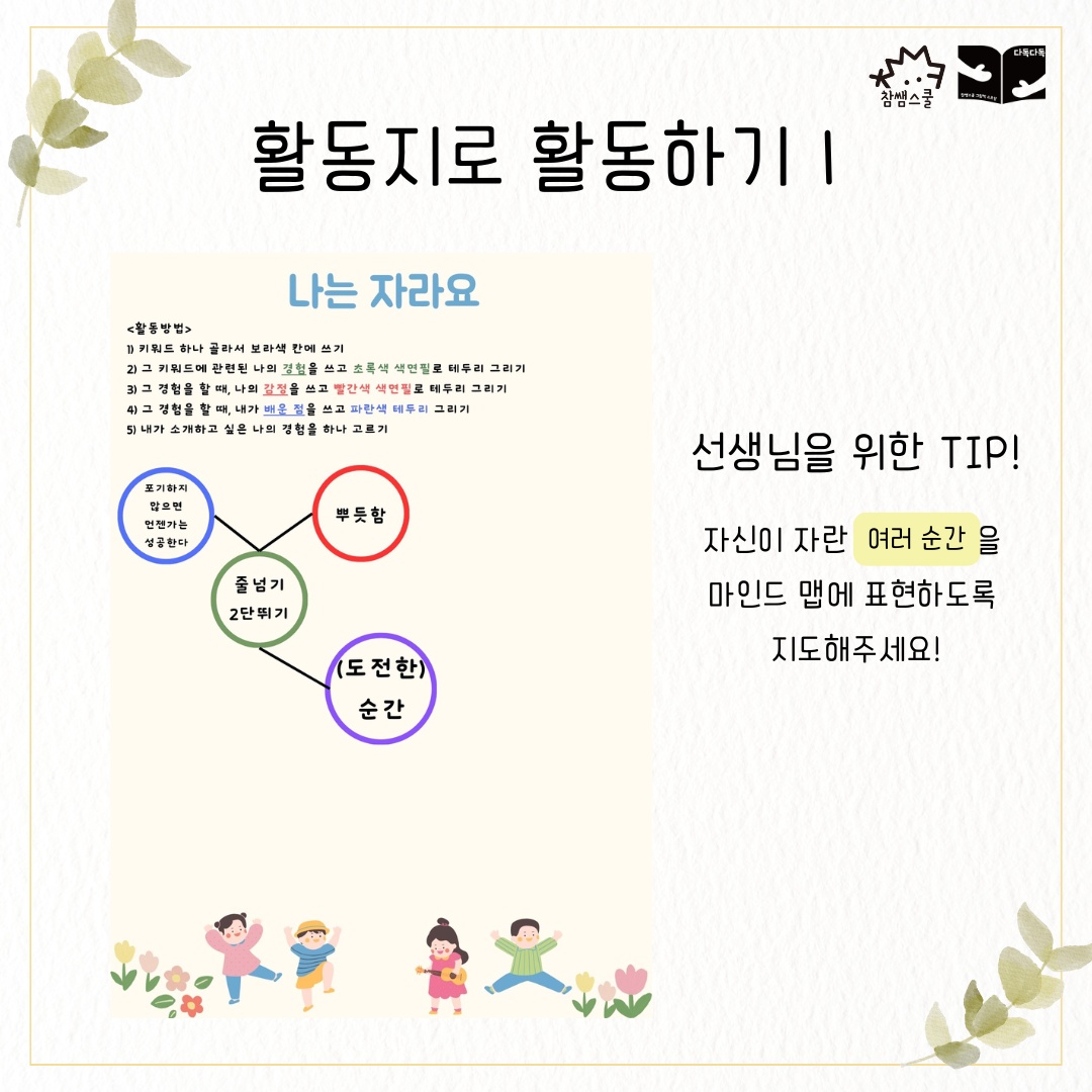 💎 그 순간의 나의 경험, 감정, 배운 점을 떠올리며 마인드맵을 완성해요.