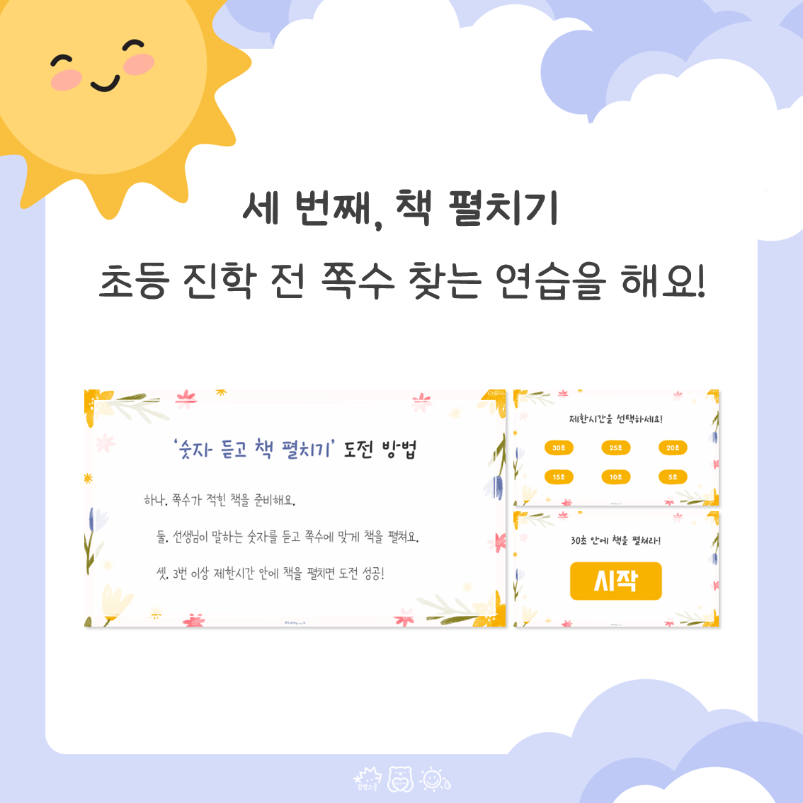 초등 진학 전 알맞은 쪽수 찾기 연습을 해요📚