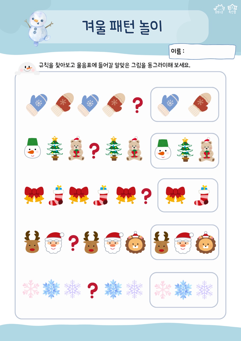 | ⛄제철특산품 <겨울편> 2탄_겨울 놀이 활동지 Ⅱ☃ (0) | 2024.12.15 |