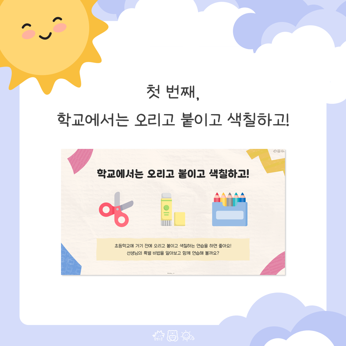 학교에서 오리고 붙이고 색칠하는 활동들을