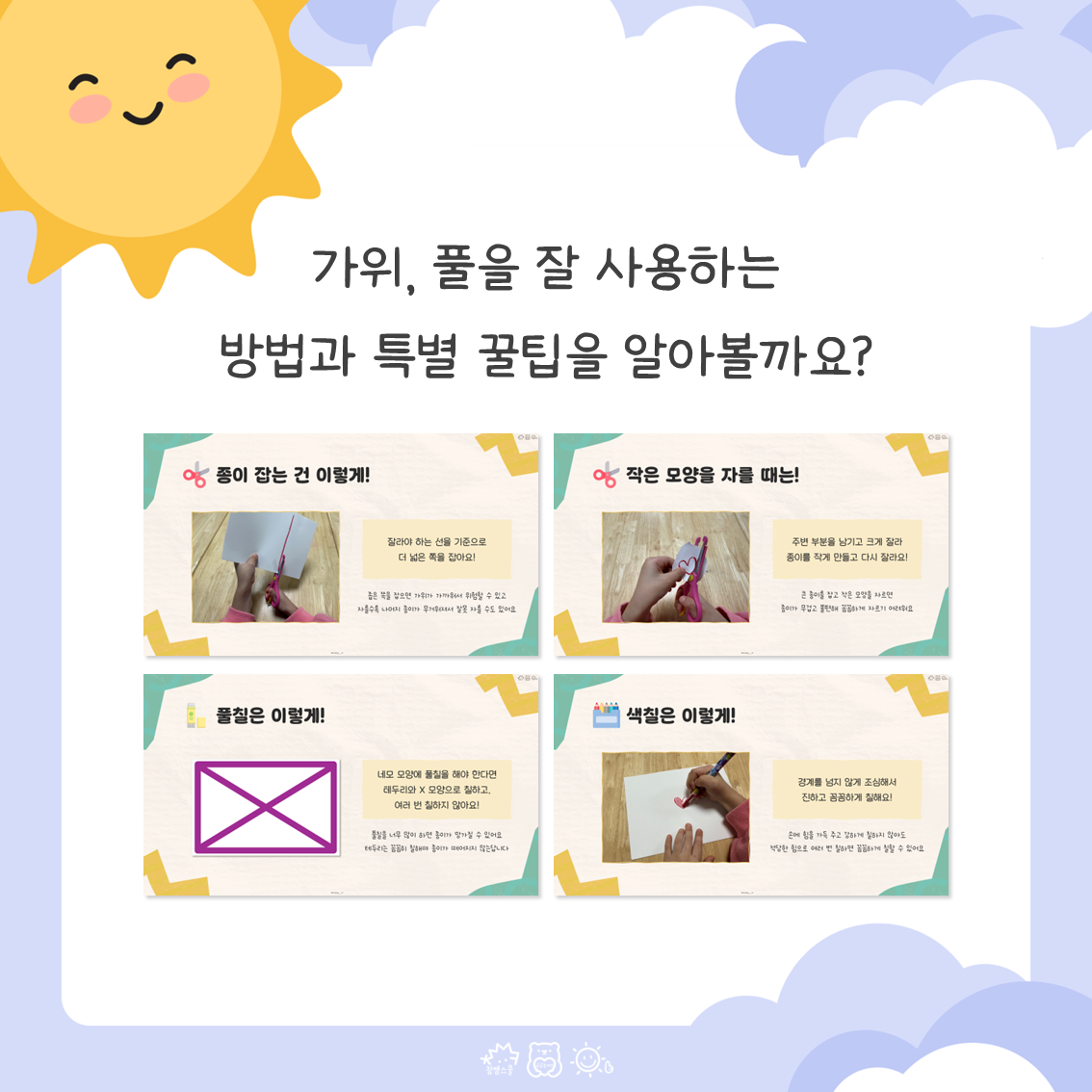 학교에서 오리고 붙이고 색칠하는 활동들을