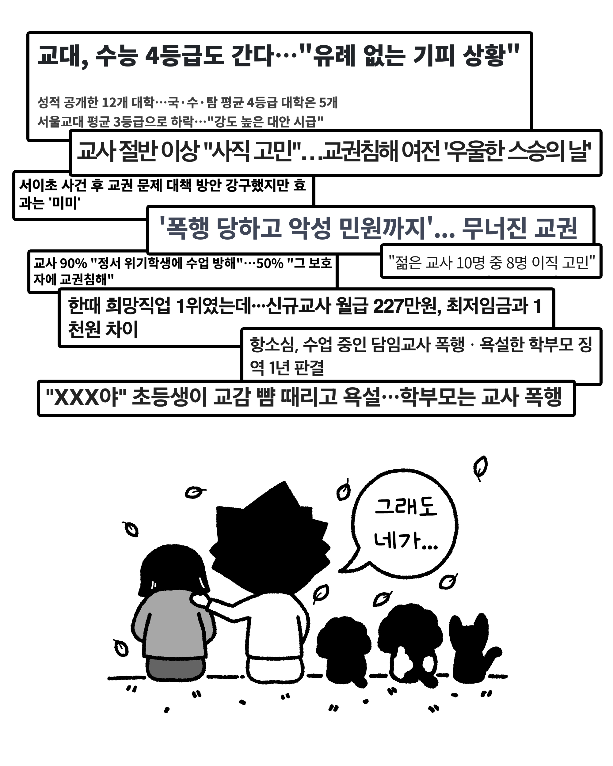 오직 ‘가르칠 수 있는 권리’, 미래를 이끌어갈 아이들을 바르게 가르치고 싶다는 바람 하나로 교사를 꿈꾸고, 교직에 남아 있는 사람들이 있다. 『그래도 네가 선생님을 했으면 좋겠어』는 1