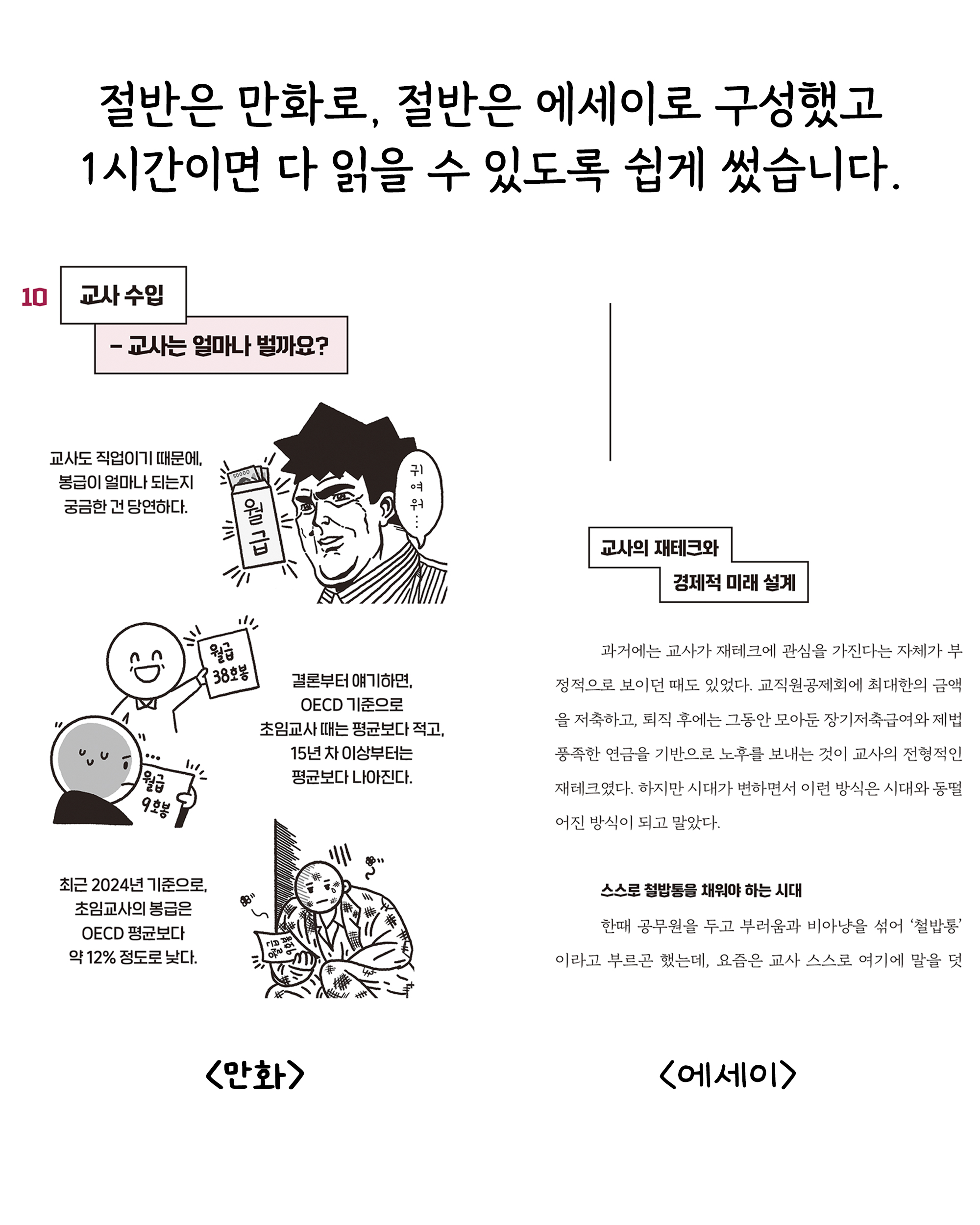 절반은 만화로 만들어서 1시간이면 읽을 수 있는 책으로 만들었어요.