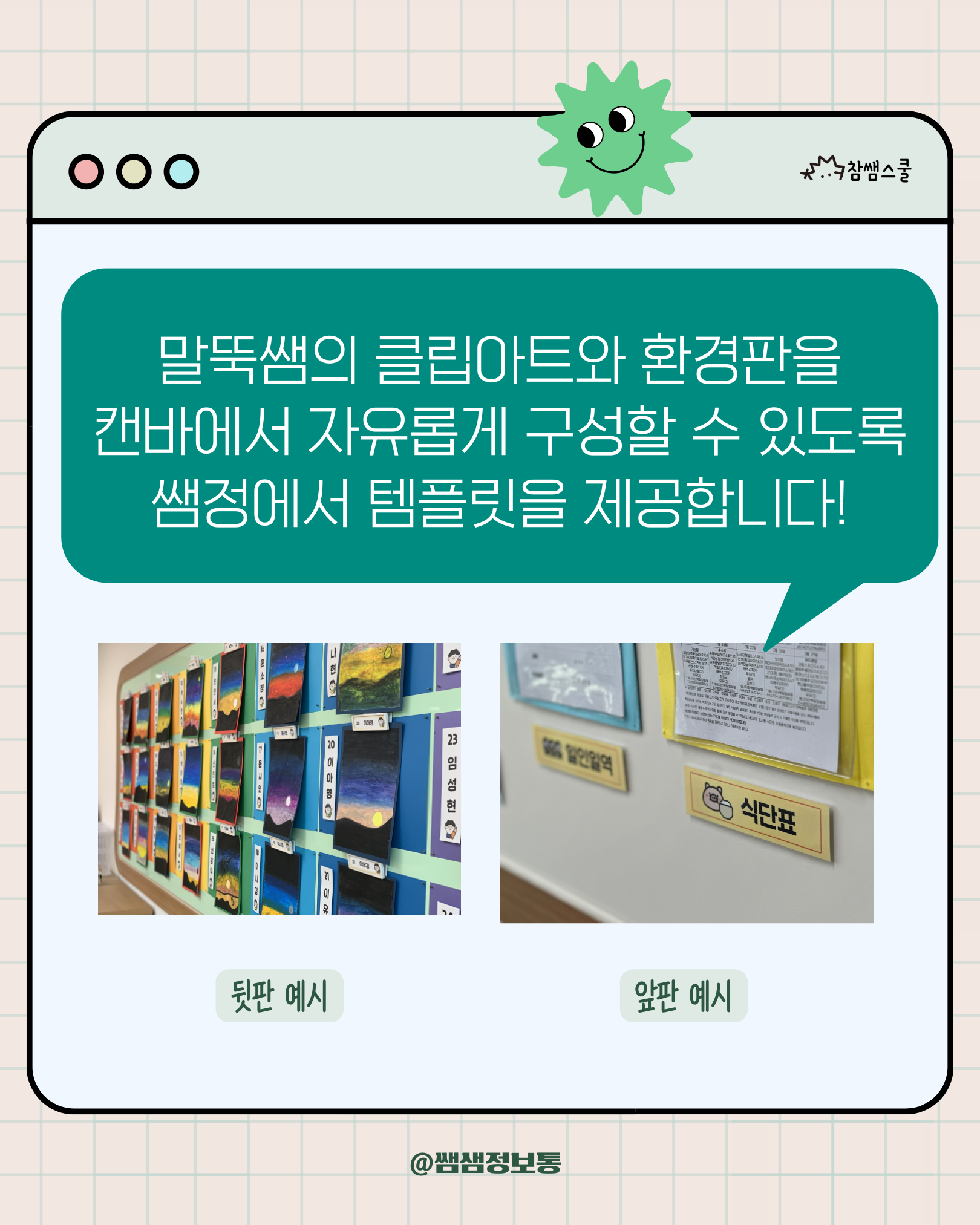 쌤샘정보통에서 말뚝쌤의 클립아트와 환경판 템플릿을 캔바에서 편집할 수 있도록 링크를 제공합니다:D