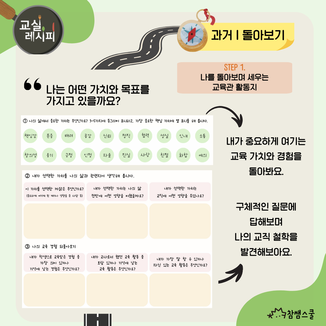 교실레시피와 함께 교사로서 더욱 단단하고 일관된 방향을 찾으며, 나만의 교직 나침반을 만들어 보세요!