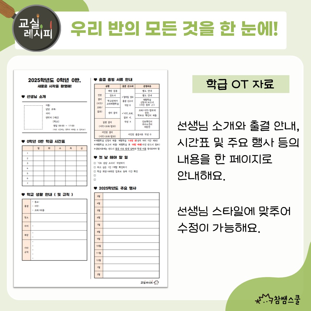 👨🏫 학급 OT 자료를 통해 학급의 모든 것을 한 눈에 정리해서 아이들에게 안내해요!