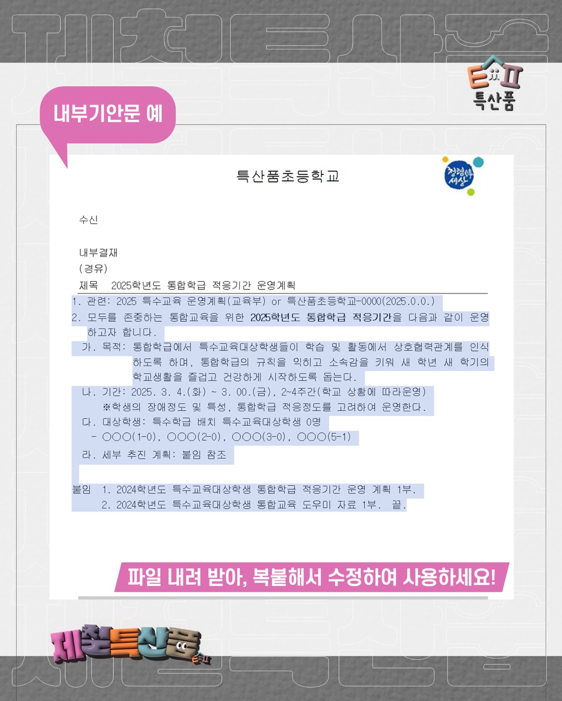 ✨ 내부기안문부터 체크리스트까지, 학교와 학생 상황에 맞게 바꿔 활용하세요!
