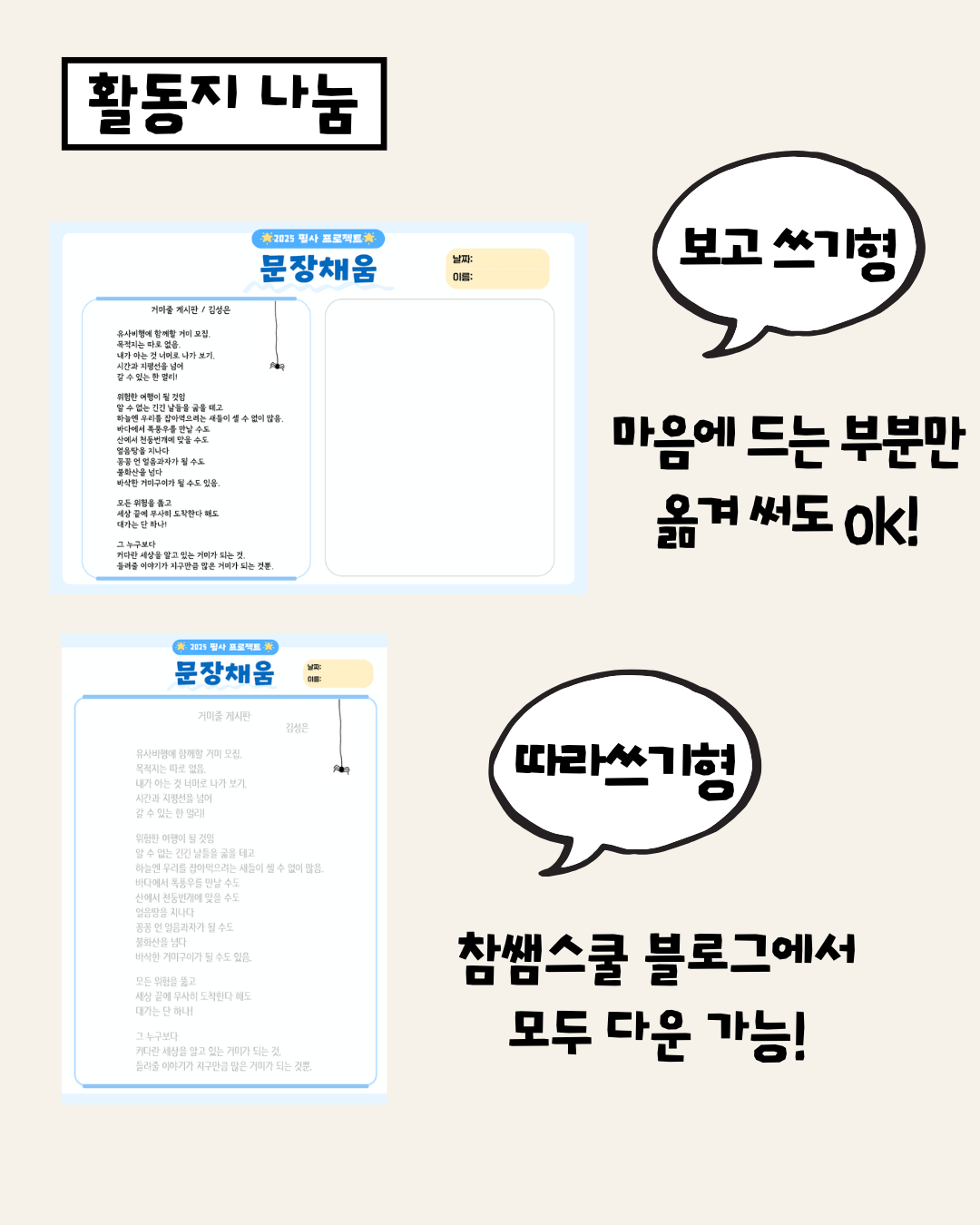 | 문장참견소 - 필사활동지 2탄 (1) | 2025.03.14 |