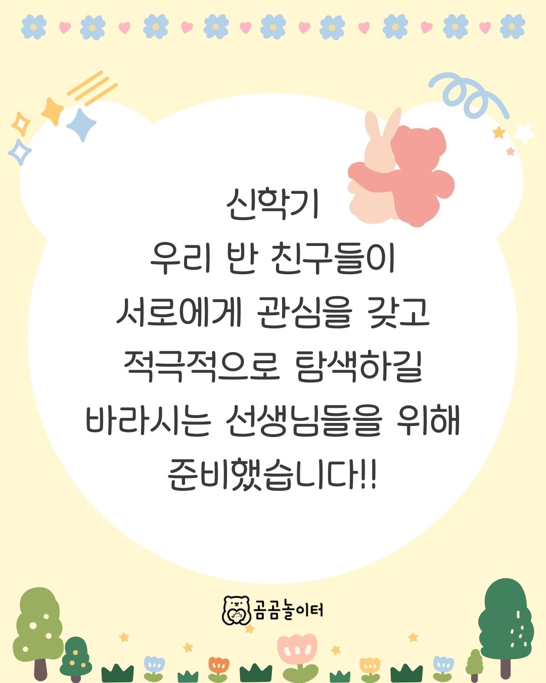 우리 반 아이들이 서로에게 관심을 갖고 적극적으로 탐색하길 바라신다면 주목!