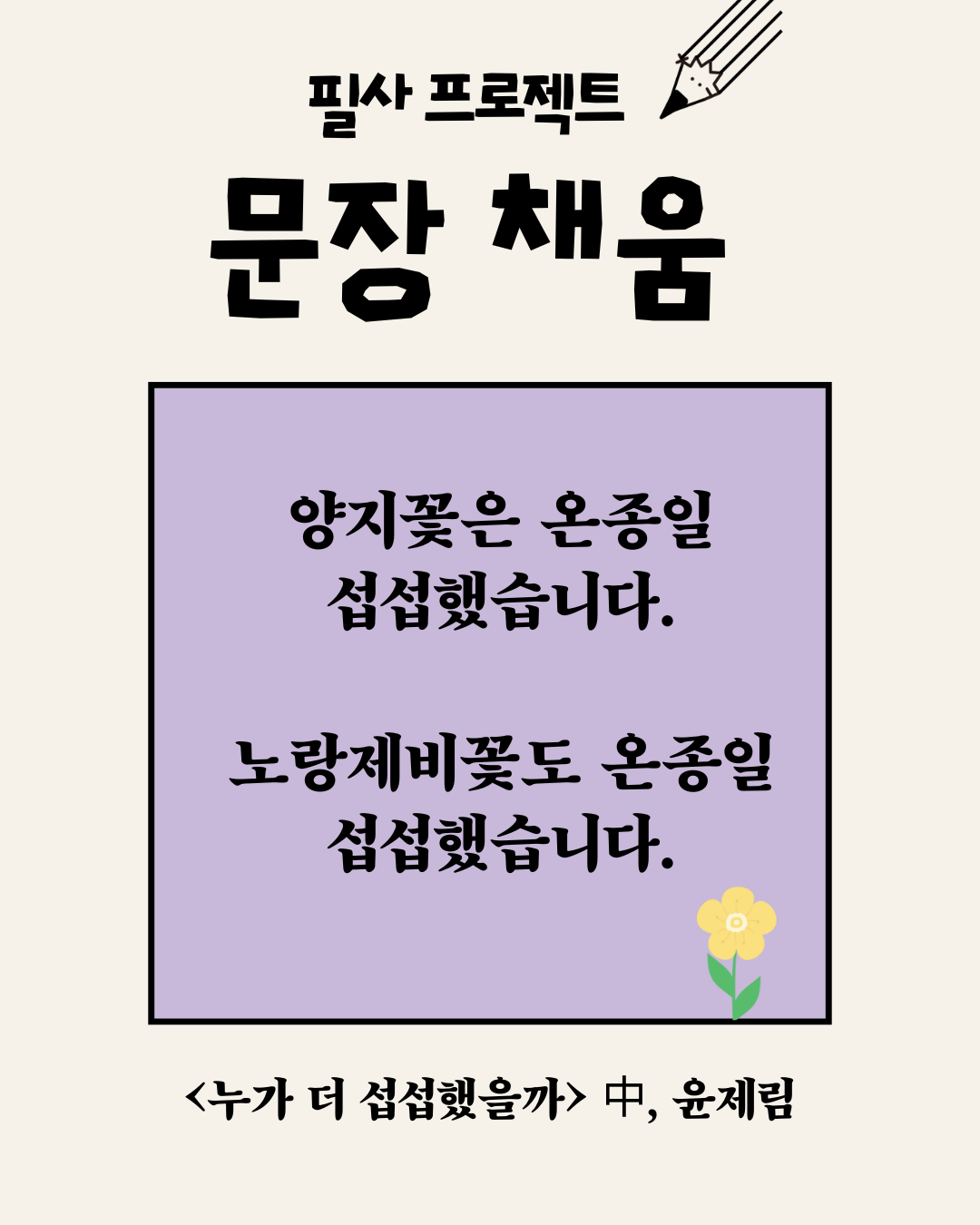 | 문장참견소 - 필사 활동지 4탄 (0) | 2025.03.28 |