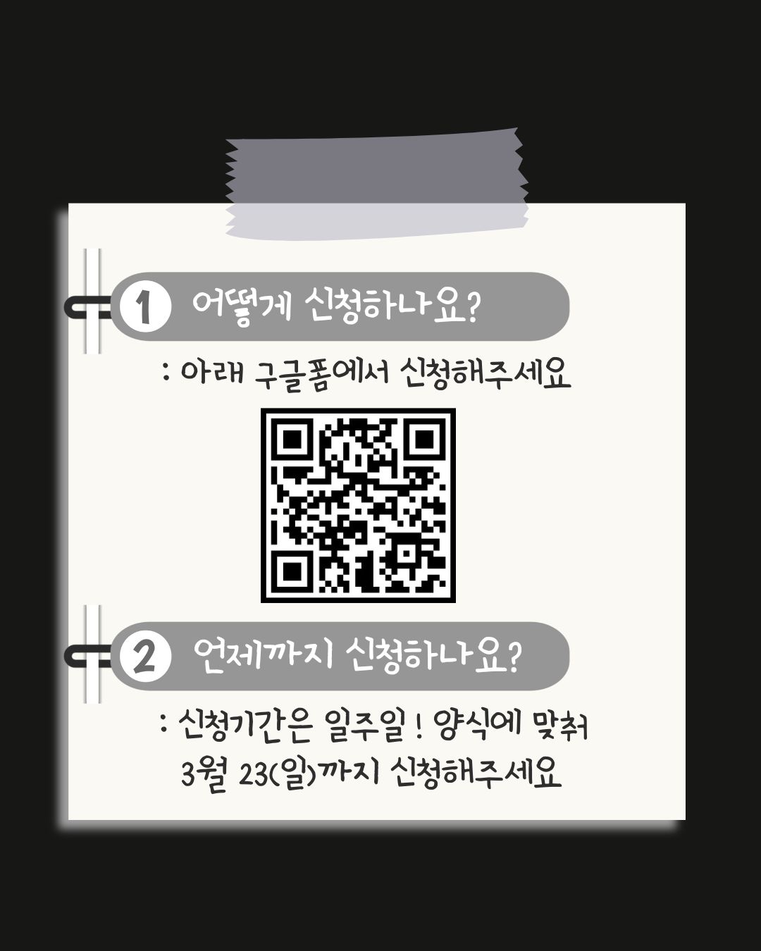 신청링크: https://forms.gle/oA6yJx2PTKXExVfv8