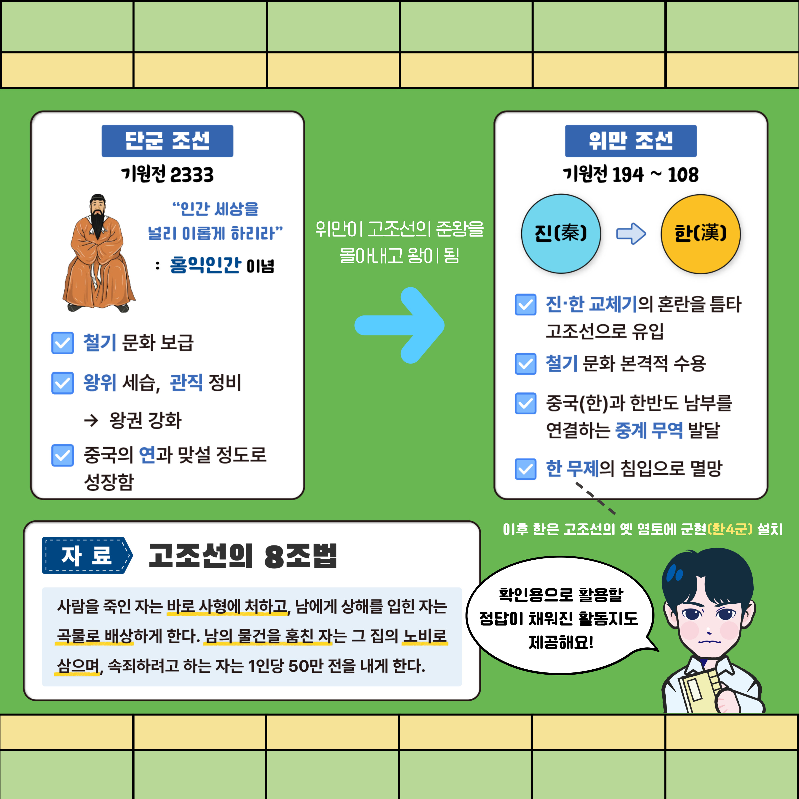 📍고조선 한방 정리 활동지 -빈칸형, 채움형으로 배운 내용 깔끔히 정리하세요!