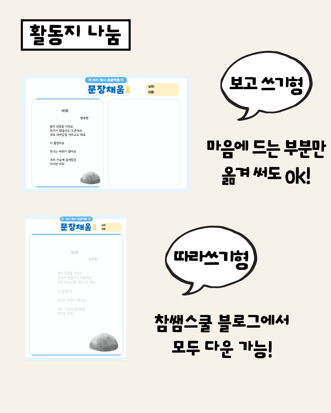 | 문장참견소 - 필사활동지 2탄 (1) | 2025.03.14 |