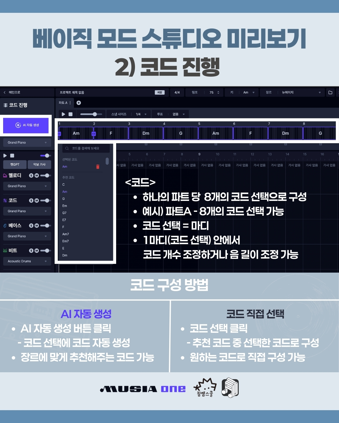 ✔ 코드 진행과 트랙 구성을 직접 만들거나 AI에게 맡기고