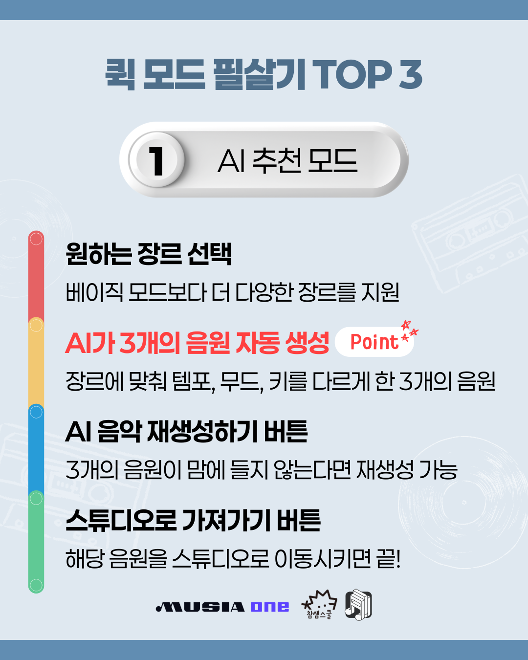✔ AI가 추천해주는 3개의 음원을 비교하며 선택하거나