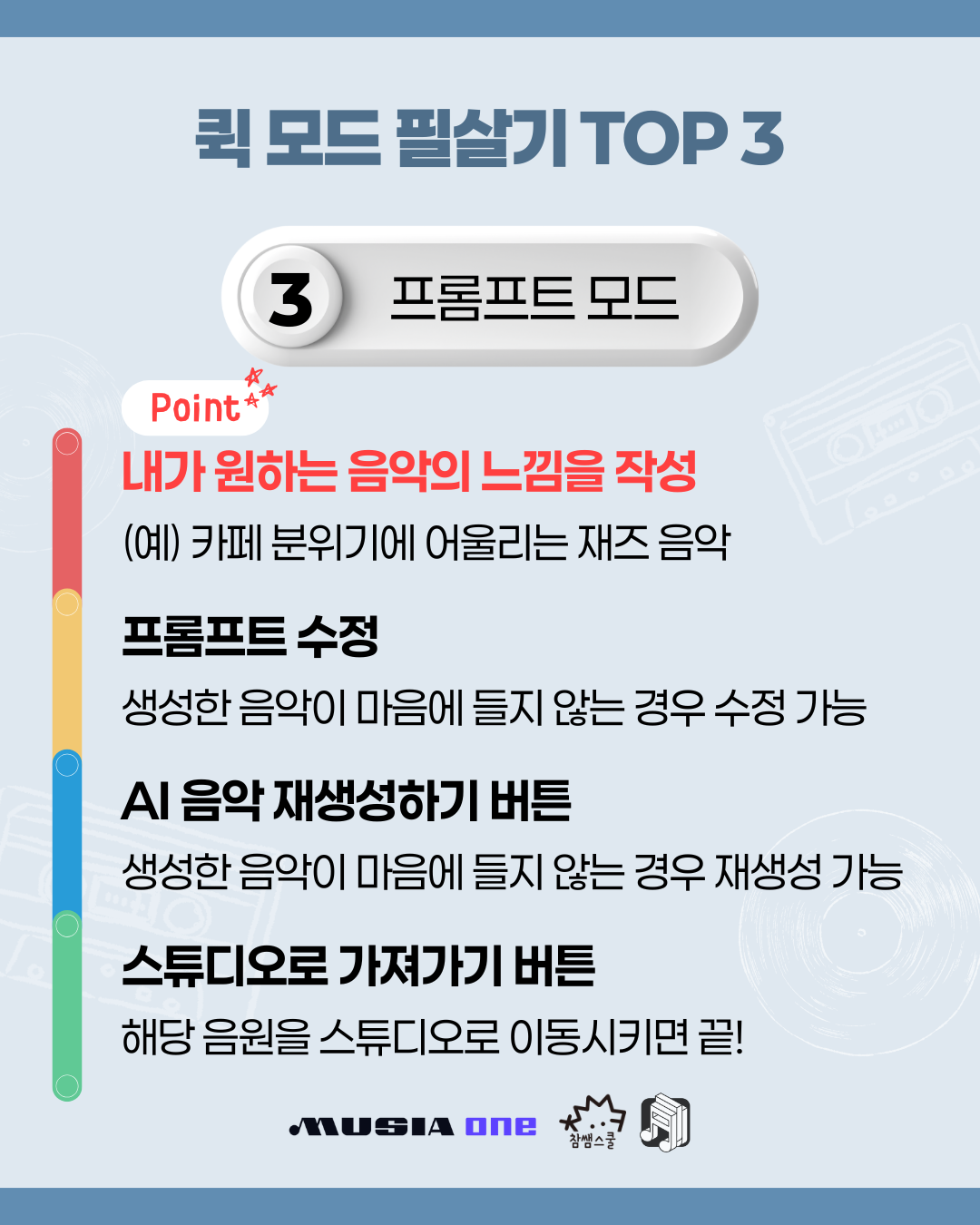 ✔ 느낌을 직접 입력해 AI가 곡을 만드는 프롬프트 기능까지!
