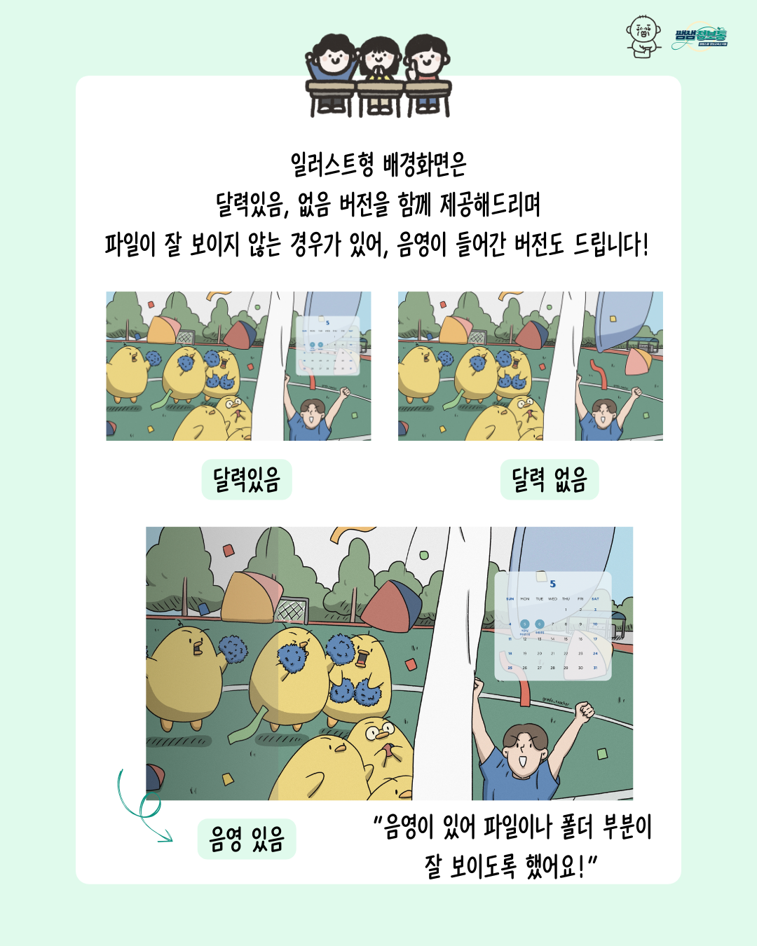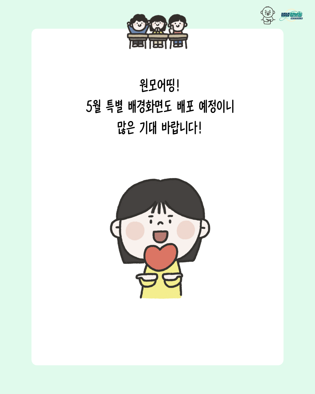 이번 달 배경화면은 선생님과 학생들의 💪열정과 사랑❤️을 담았습니다.
