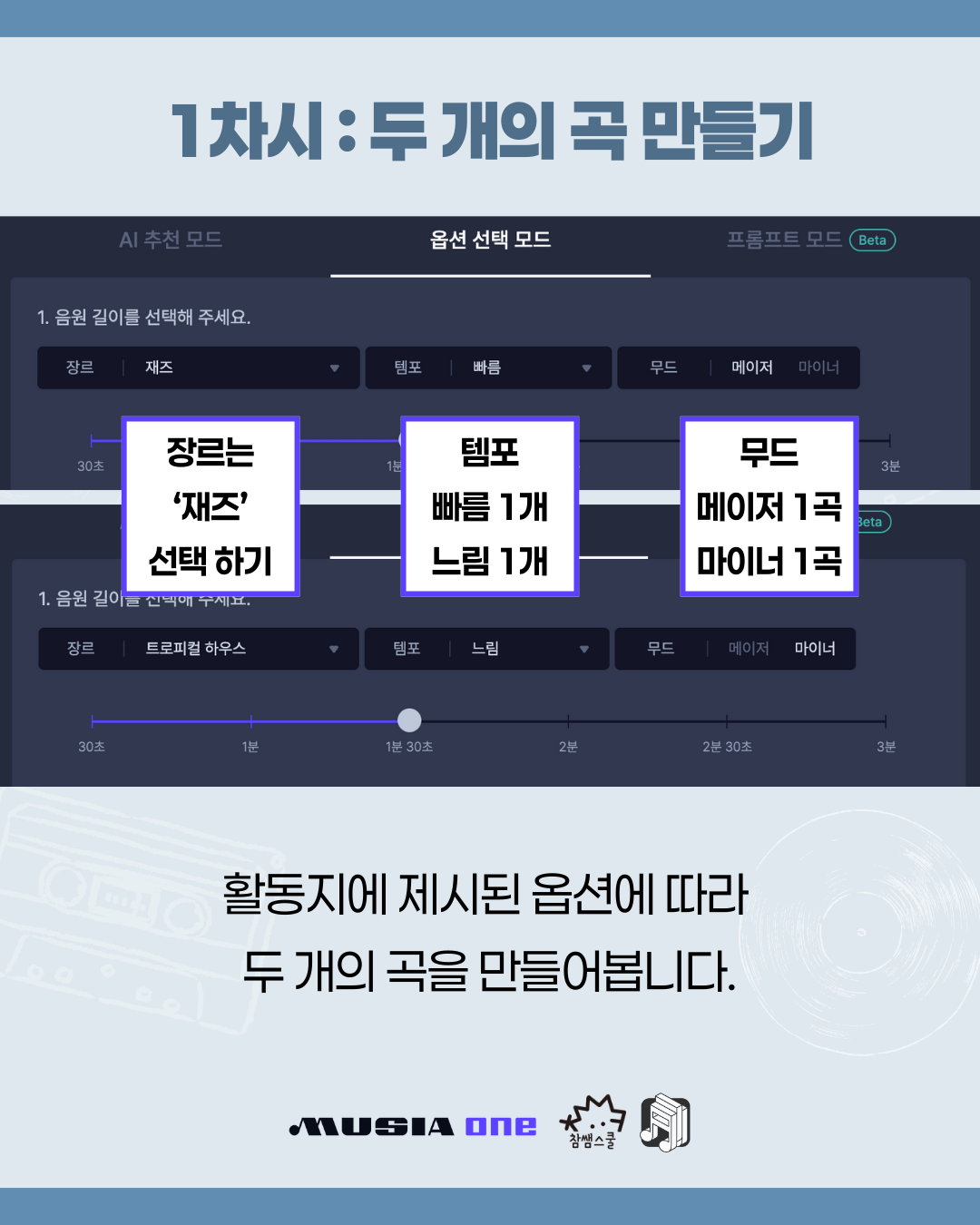 AI 활용법과 음악 요소를 배우고, 내가 원하는 스타일의 곡을 능동적으로 만들어보는 시간! 뮤지아원과 함께해요 🎶