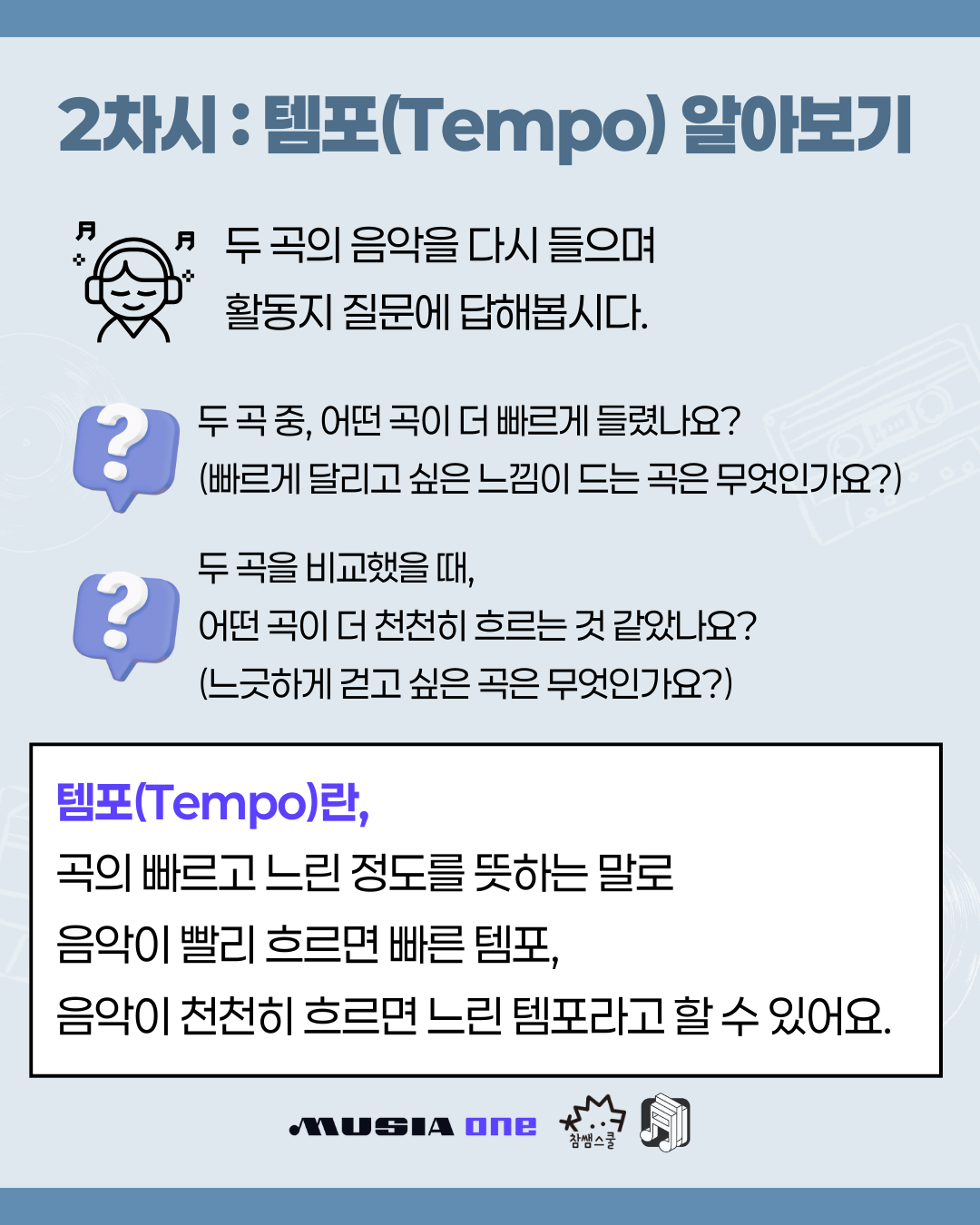 ✔ 빠르기(빠른 템포/느린 템포)와 무드(메이저/마이너)를 비교하며