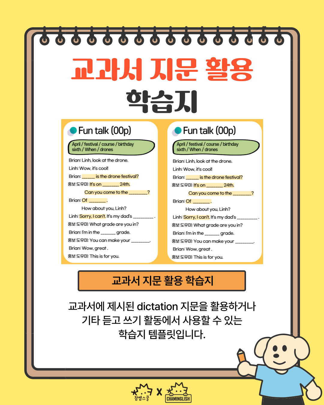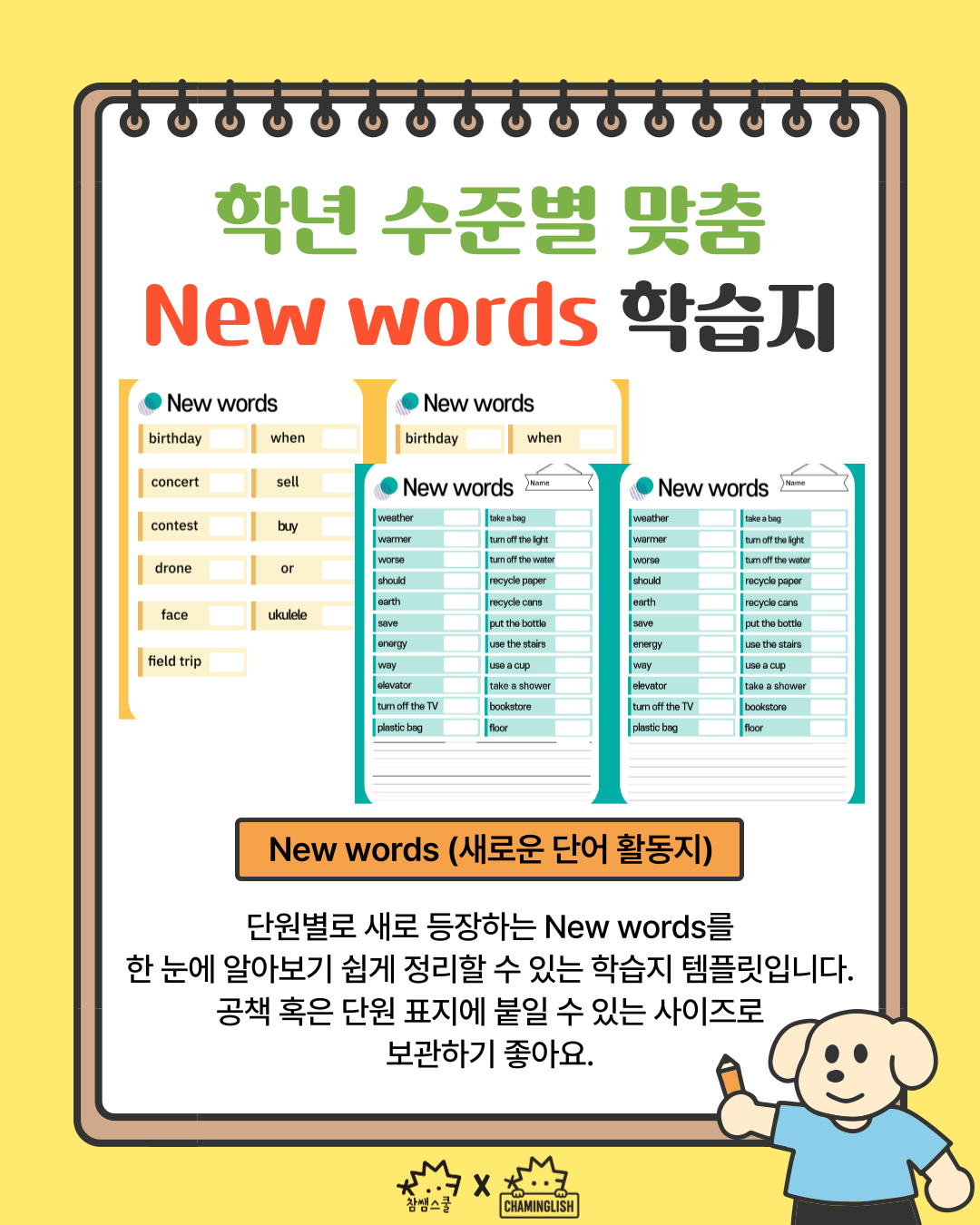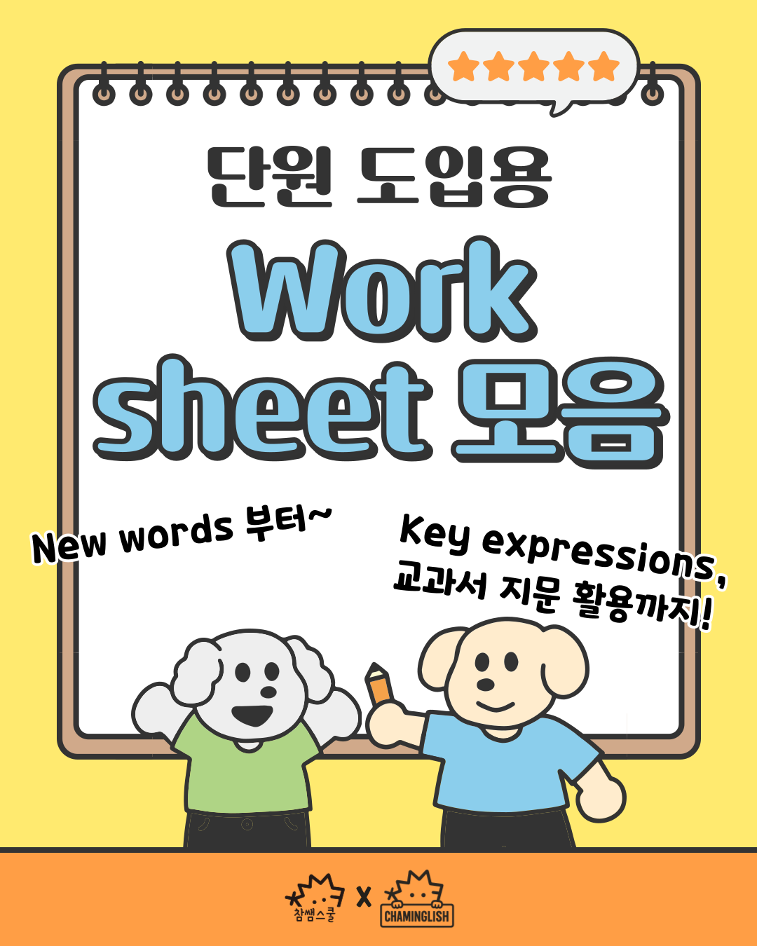 단원별 기본 학습지 템플릿을 찾고 계신 선생님들! New words 부터 Key Expressions, 교과서 지문을 활용할 수 있는 학습지 템플릿까지 차밍글리쉬가 선물 드립니다!🎁