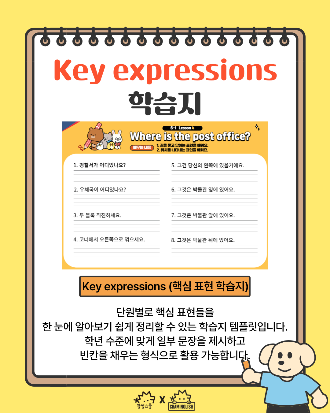 단원별 기본 학습지 템플릿을 찾고 계신 선생님들! New words 부터 Key Expressions, 교과서 지문을 활용할 수 있는 학습지 템플릿까지 차밍글리쉬가 선물 드립니다!🎁