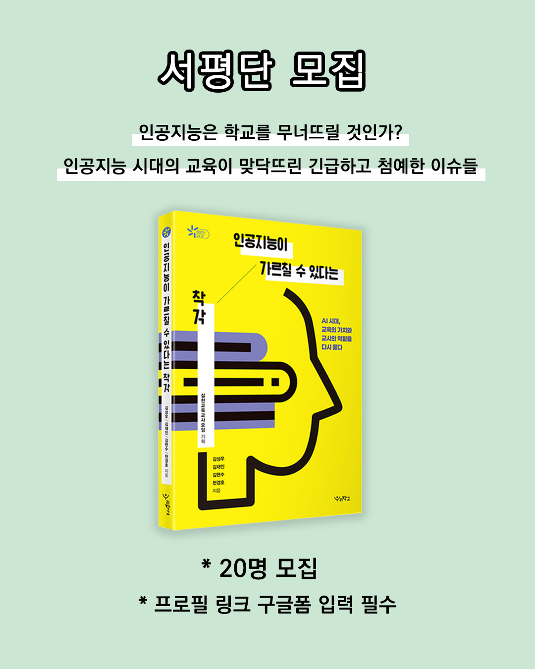 | 요즘 교사를 위한 AI 가이드 [서평단] 🔎 (0) | 2025.04.23 |