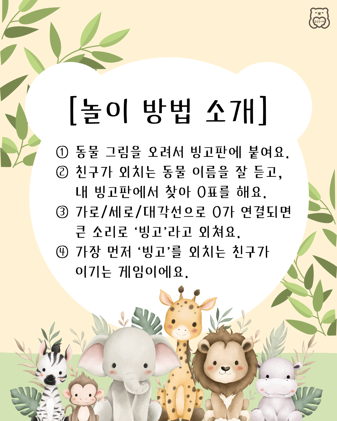 빙고놀이를 활용해 동물의 이름을 익히고,