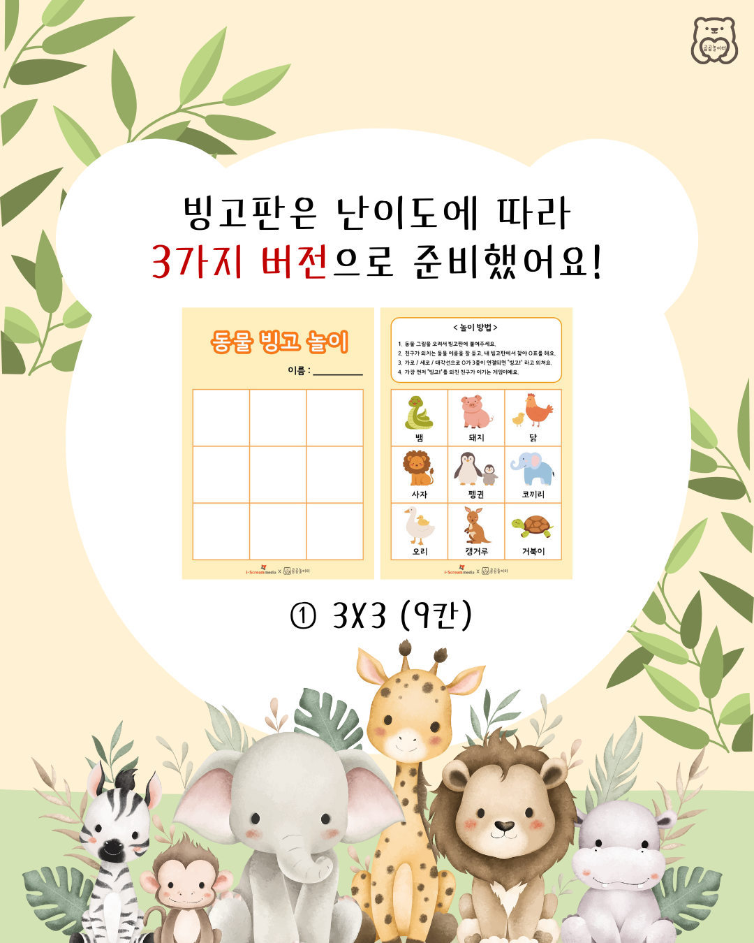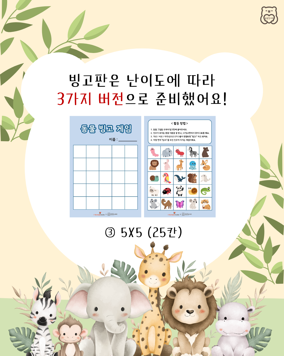 ✨ 빙고판은 난이도에 따라 3가지 버전으로 준비했어요!