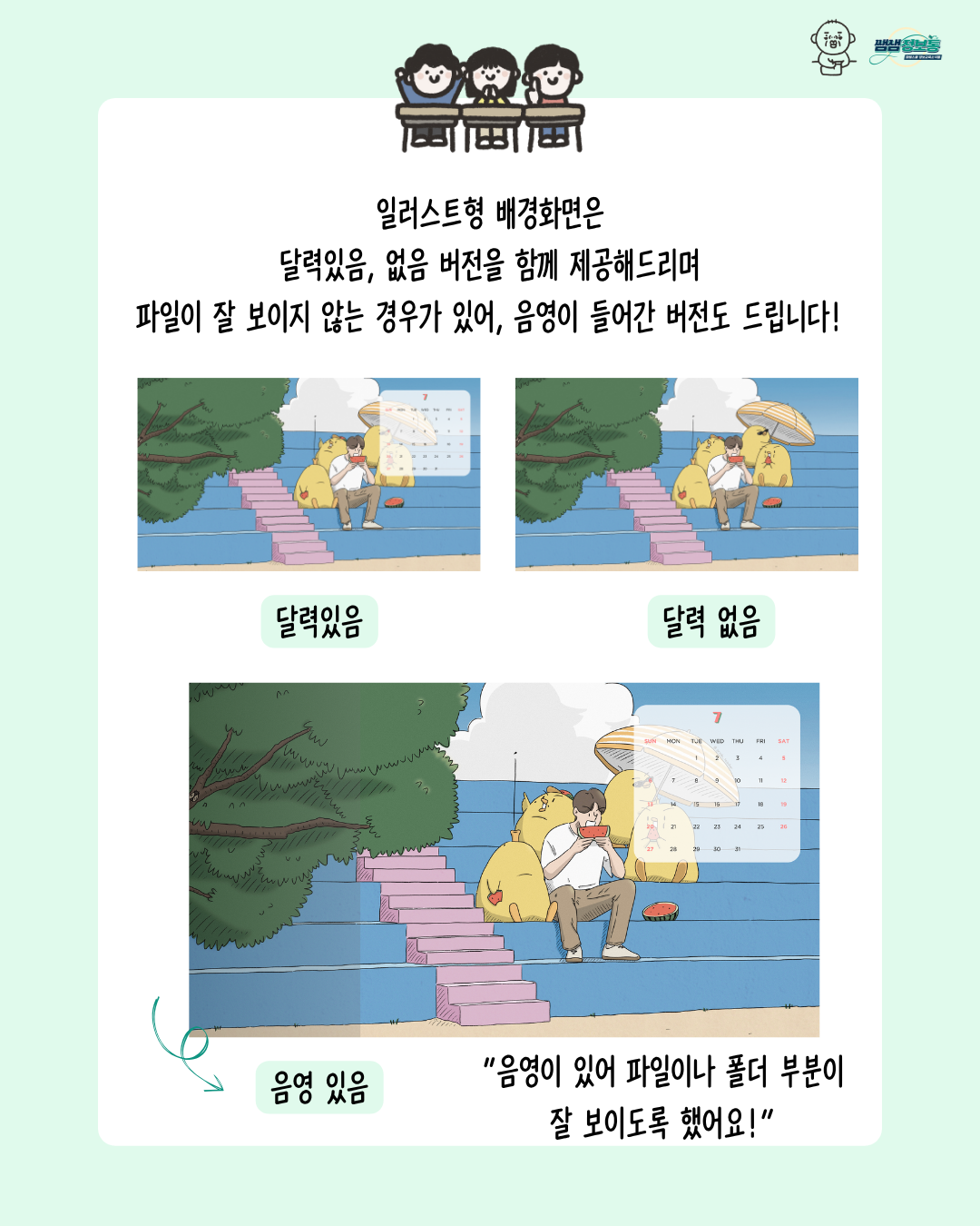 이번 달 배경화면은 🌞 뜨거운 날씨 속 소소한 즐거움 ☘️을 담았습니다.