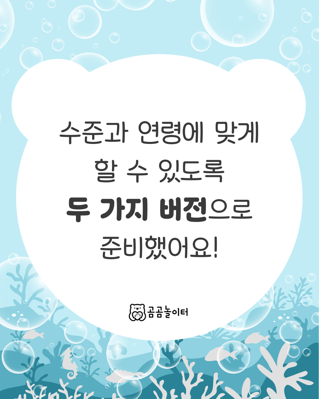 수준과 연령에 맞게 할 수 있도록 두 가지 버전으로 준비했어요🤍