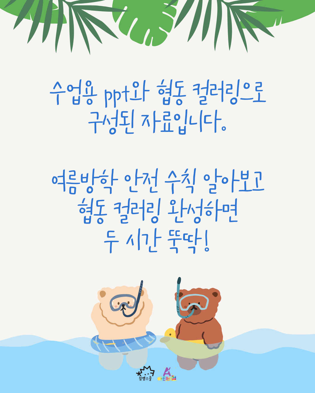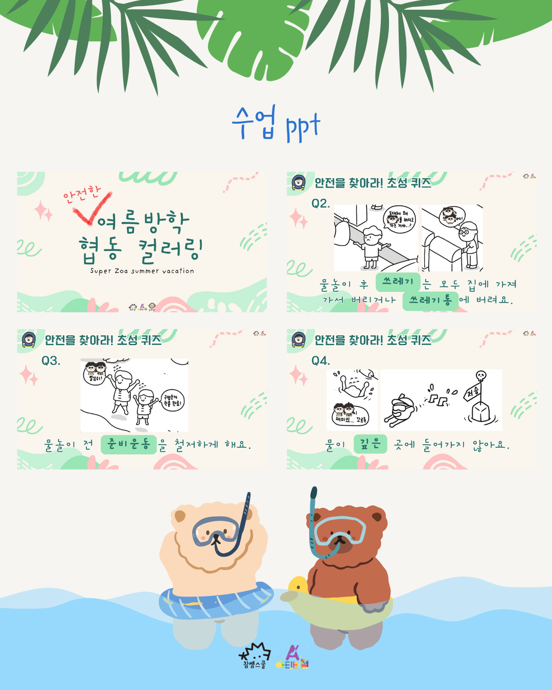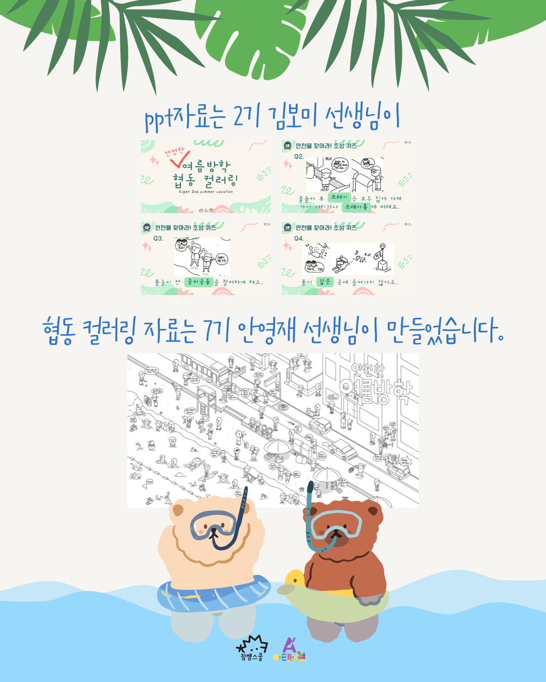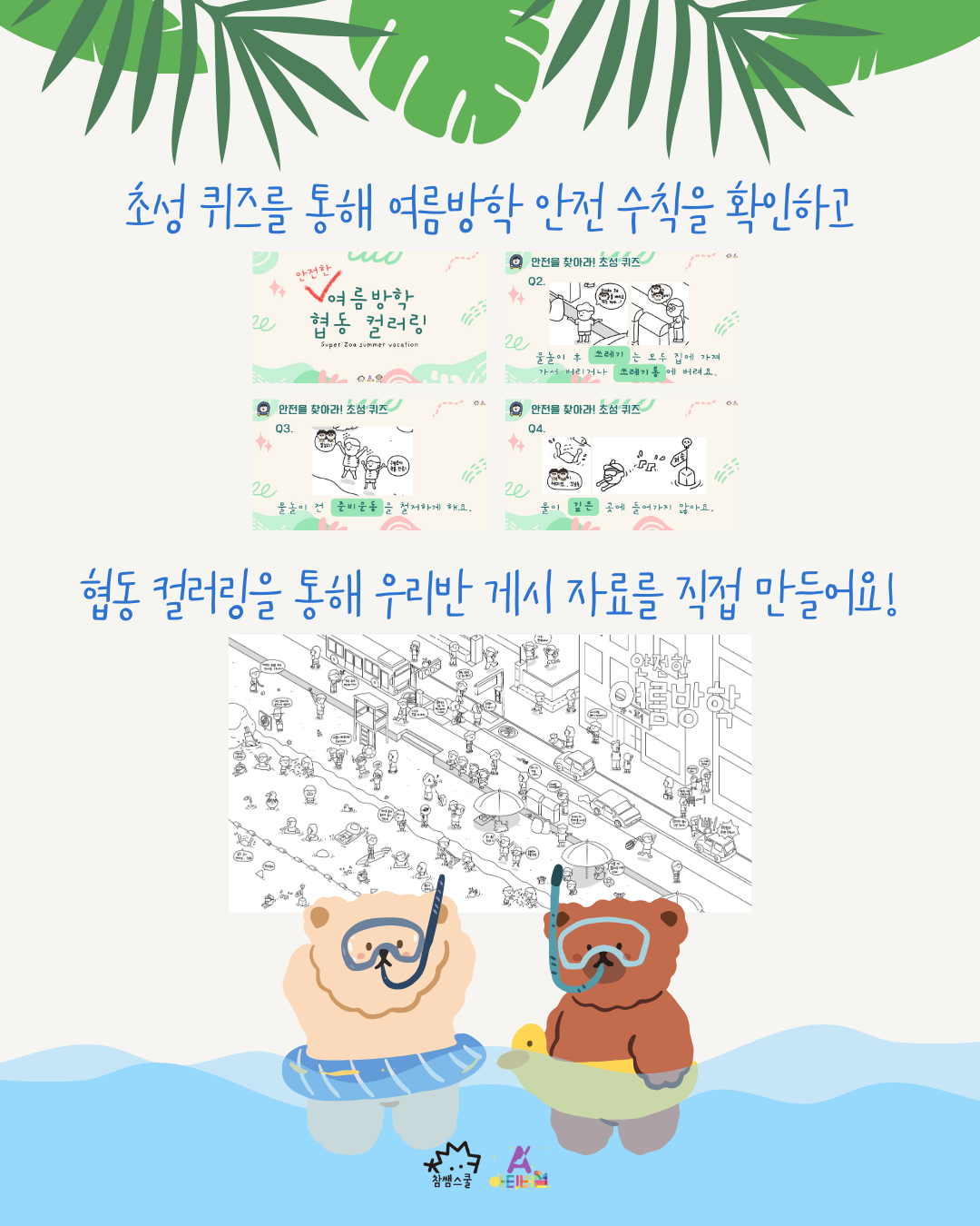 협동 컬러링 자료를 통해 여름방학 안전 수칙을 살펴보고, 꼼꼼하게 색칠하여 교실 게시 자료를 직접 만들어 보아요!👊👊👊