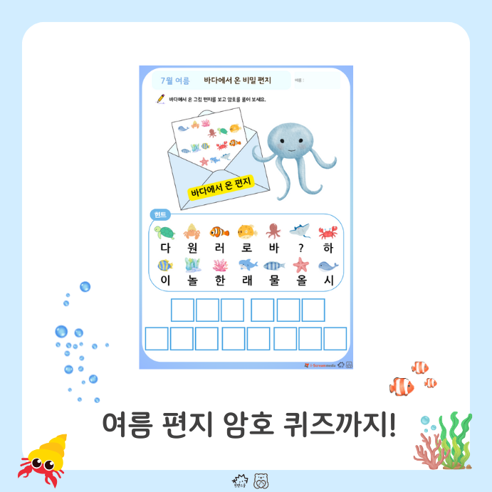 | [곰곰놀이터X아이스크림연수원] 바다 꾸미기 자료 (0) | 2025.07.11 |