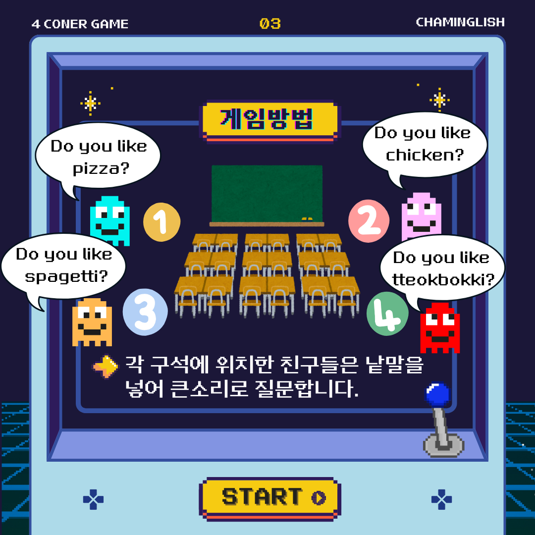 👉 학생들은 자신이 좋아하는 것을 선택해 교실 구석으로 이동!