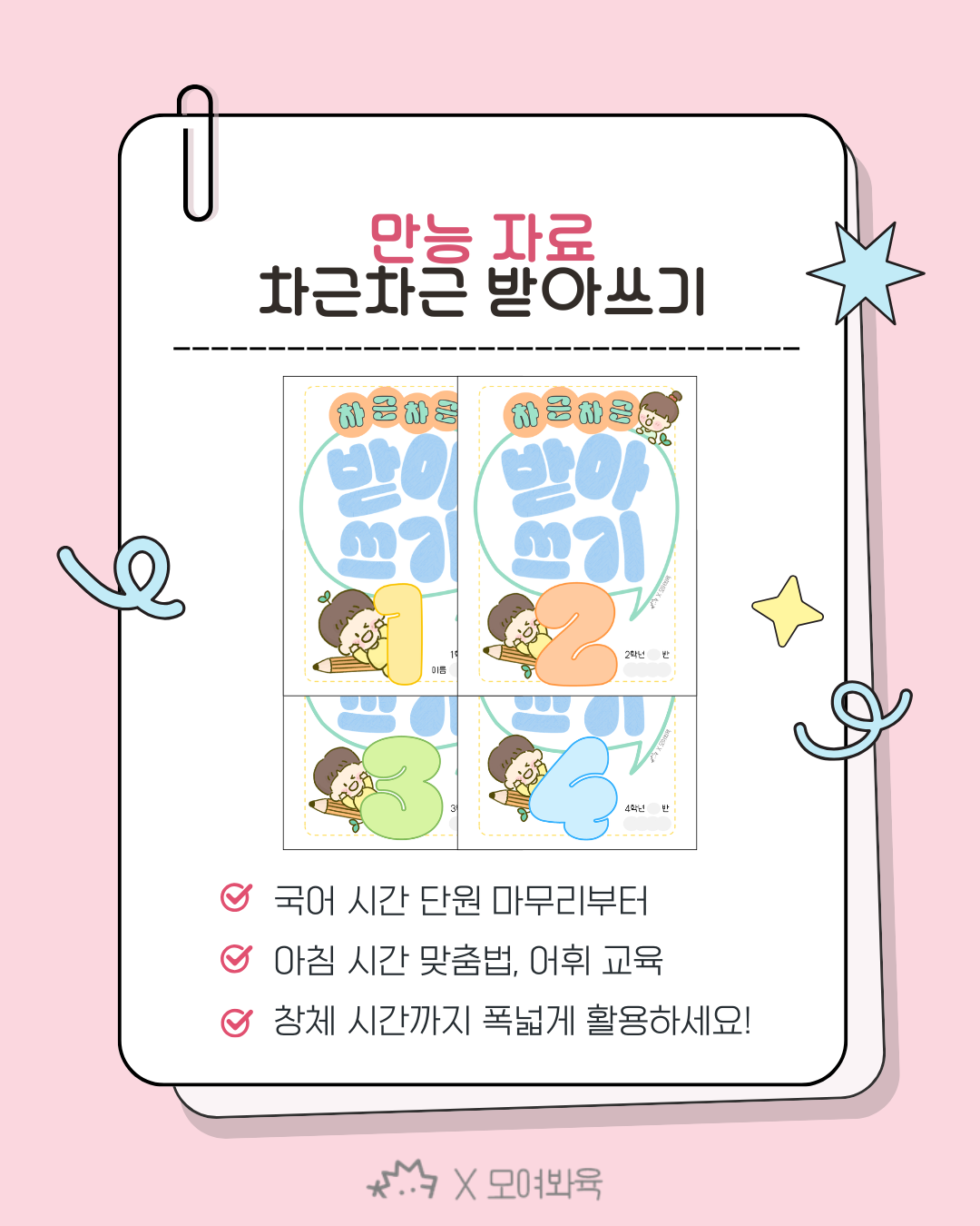 📍 1~4학년 학년별 받아쓰기 자료