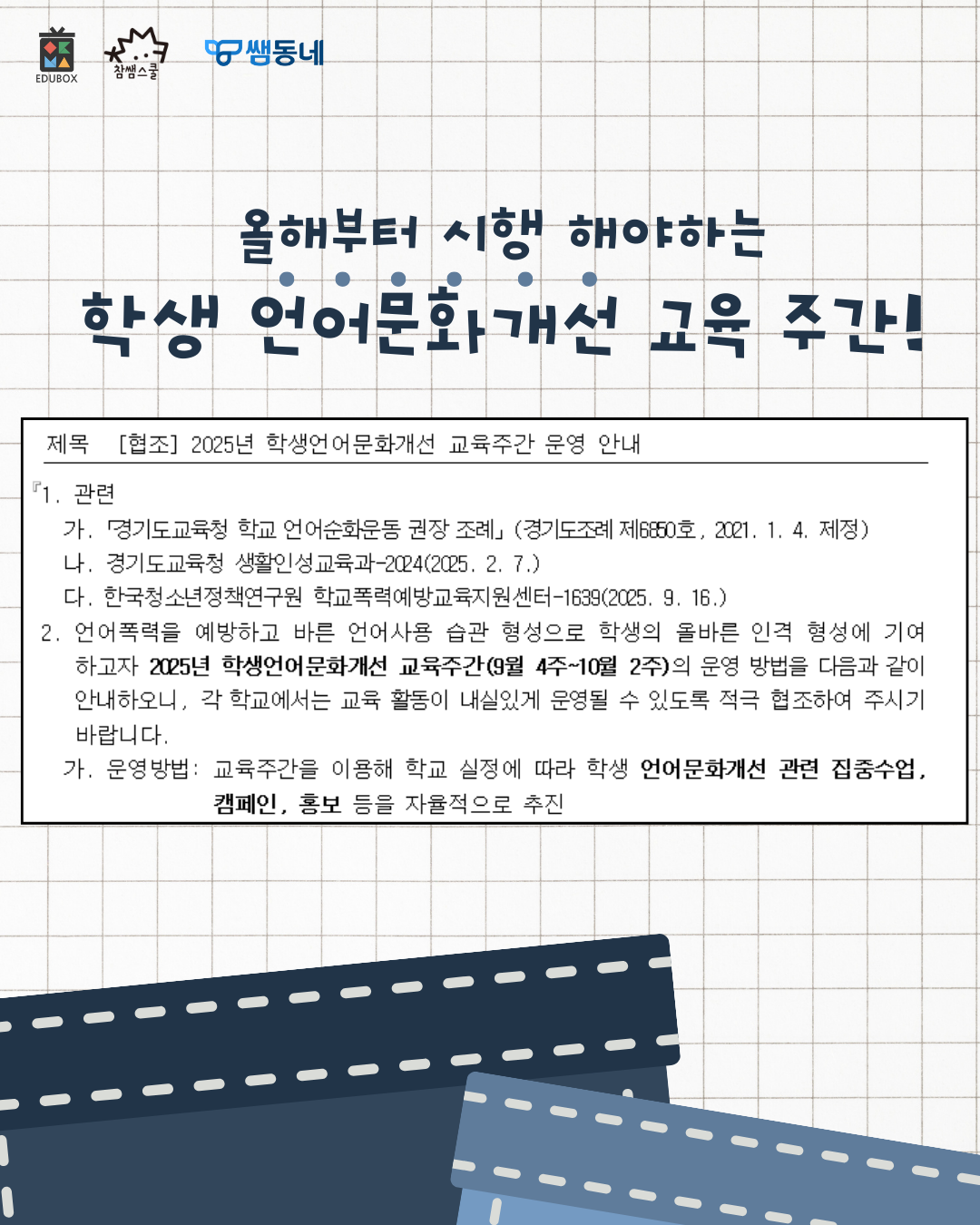 9월 4주부터 10월 2주는 "학생 언어문화 개선 주간"입니다.