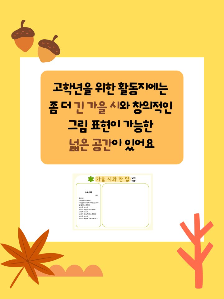 ✔️긴 가을 시와 자유로운 표현이 가능한 넓은 공간이 담긴 고학년 활동지