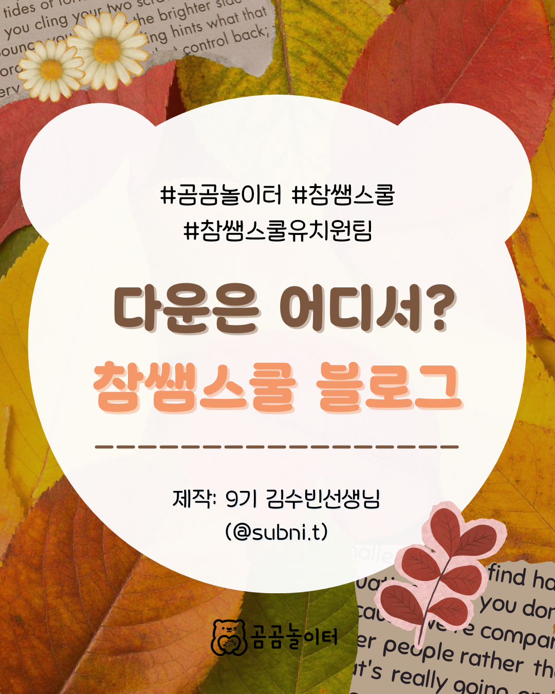 | [곰곰놀이터 X 아이스크림연수원] 가을 숨은 그림 찾기 (0) | 2025.10.20 |
