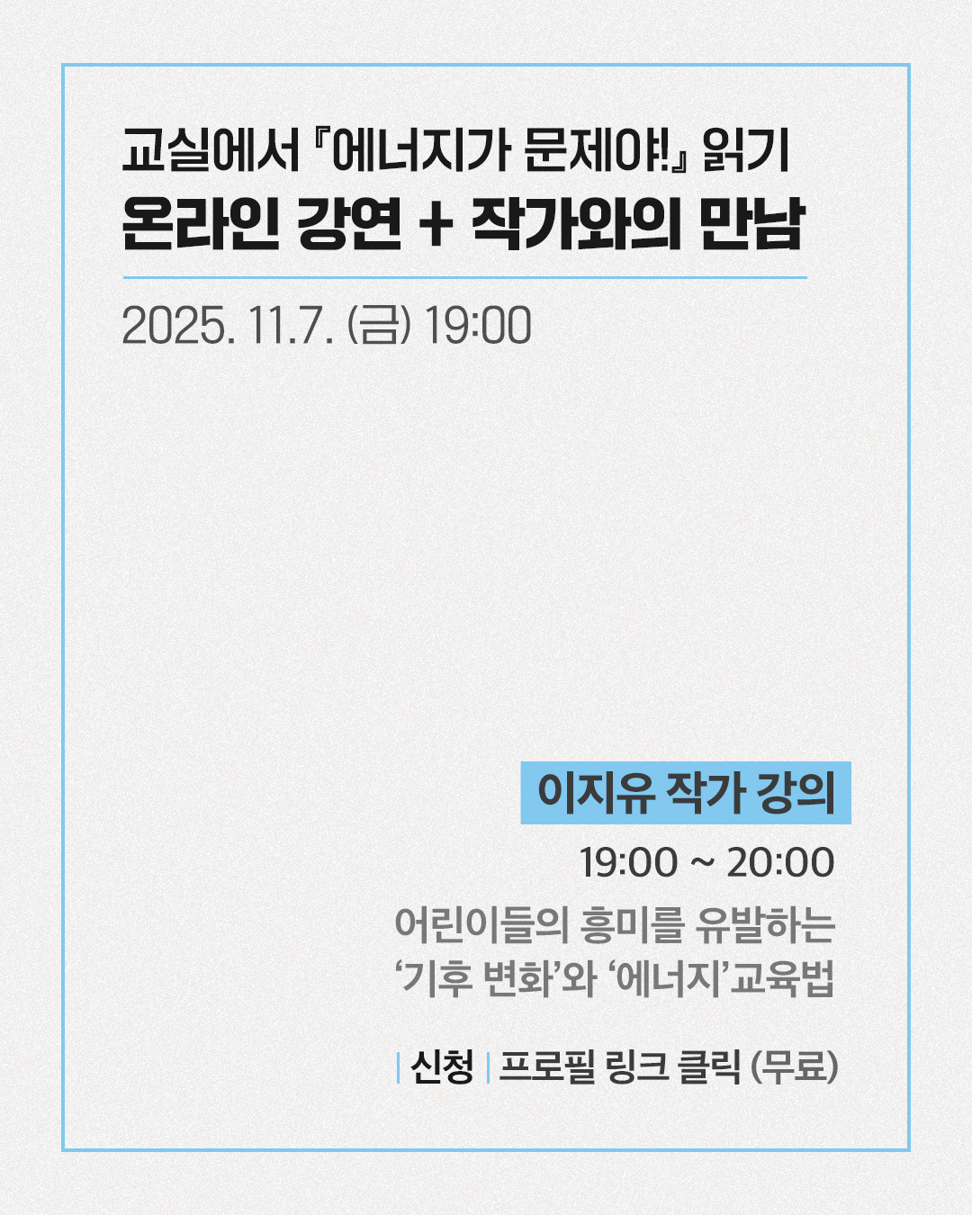 [에너지가 문제야!] 이지유 작가, 온라인 강연+작가와의 만남 신청
