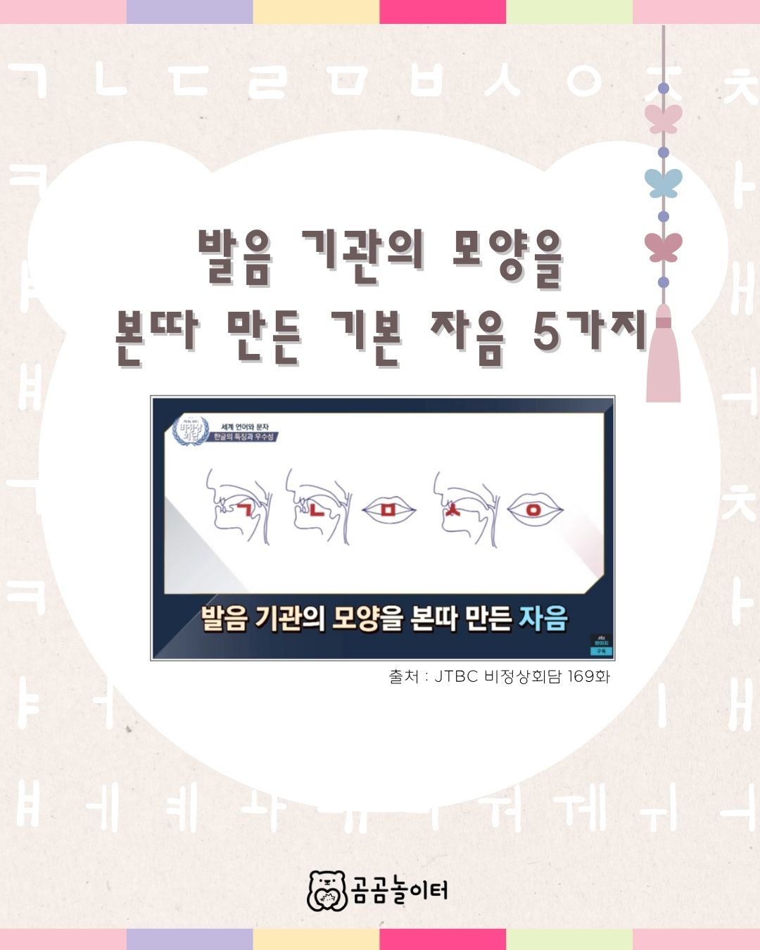 발음 기관의 모양을 본따 만든 기본 자음 5가지