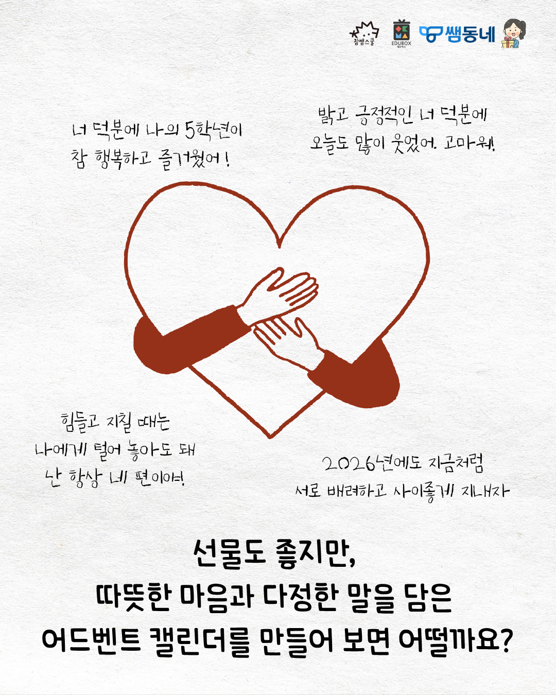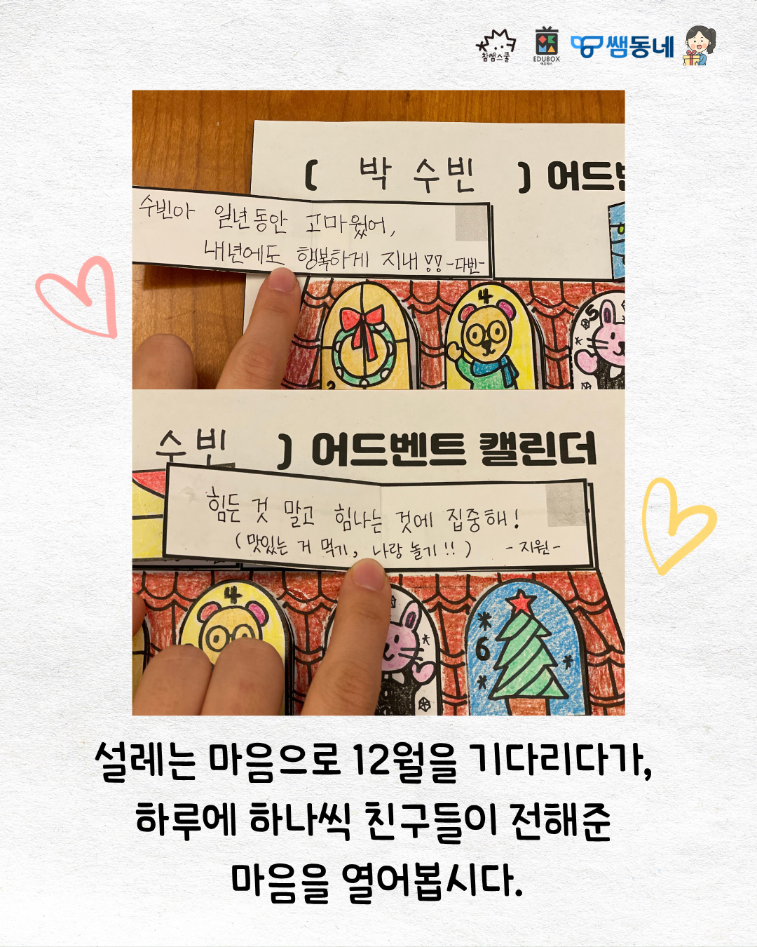 하루하루 쌓인 다정한 말들이 여러분의 마음을 따뜻하게 감싸줄 거예요. 마음을 전하는 어드벤트 캘린더와 함께 우리 마음의 온도를 높여 보아요🌡️💕