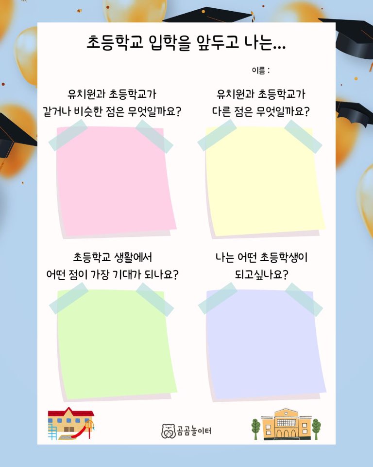 - 초등학교 입학을 앞두고 나는 어떤지 활동지에 적어봐요!