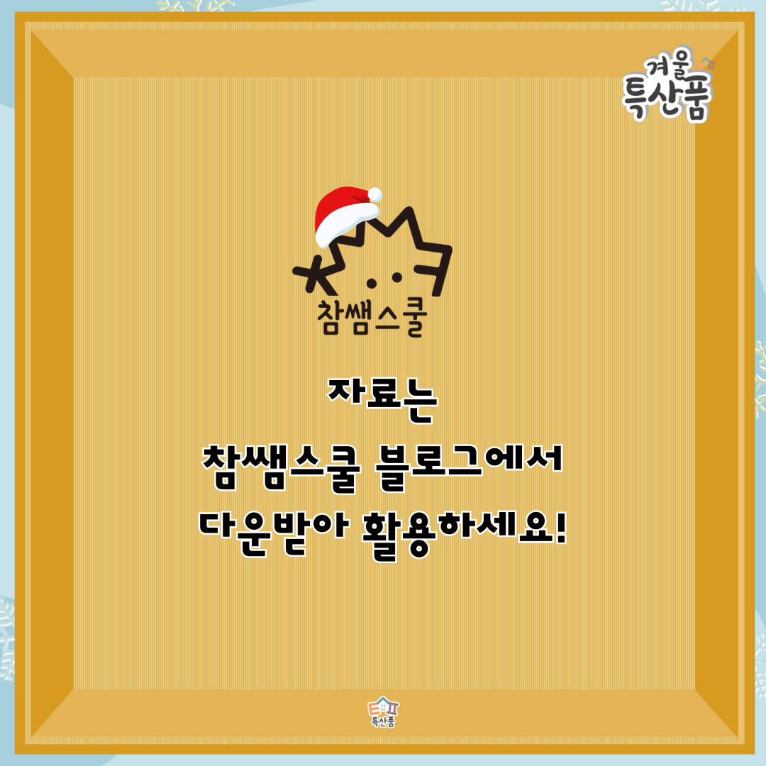 #겨울 #활동지 #유아 #초등 #특수 #자료공유 #겨울활동 #참쌤스쿨 #특산품 #글자찾기 #수세기 #트리그리기 #반쪽그리기 #겨울놀이