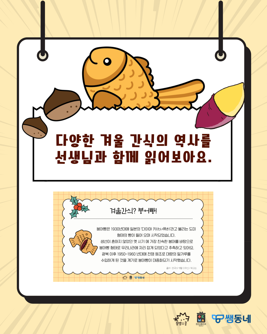 📖 다양한 겨울 간식의 역사를 선생님과 함께 읽어 보아요.