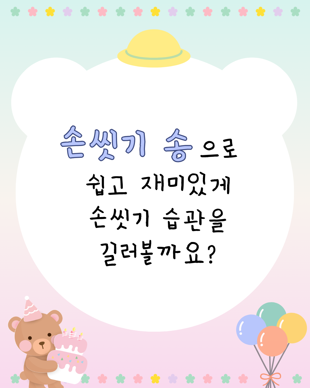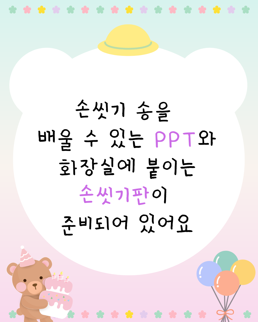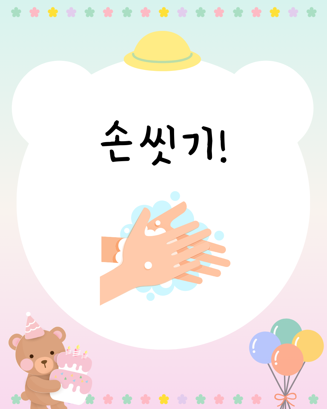 아이들이 스스로 화장실에서 즐겁게 손을 씻을 수 있도록 '손씻기 ' 수업 자료를 준비했어요!