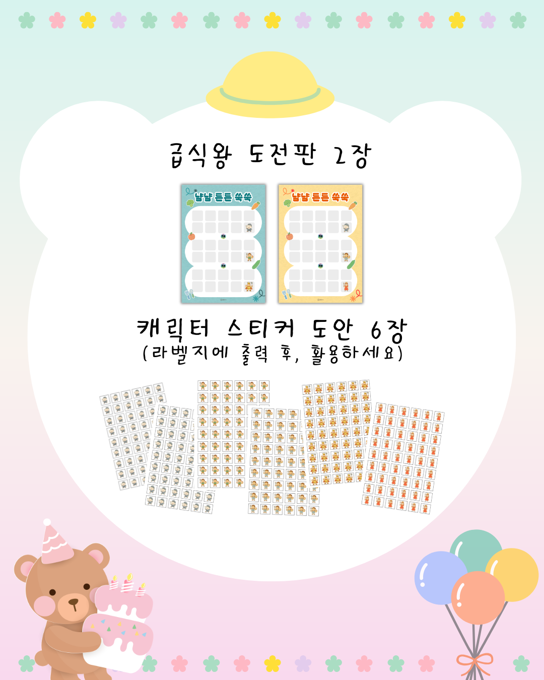 캐릭터 스티커 도안 6장
