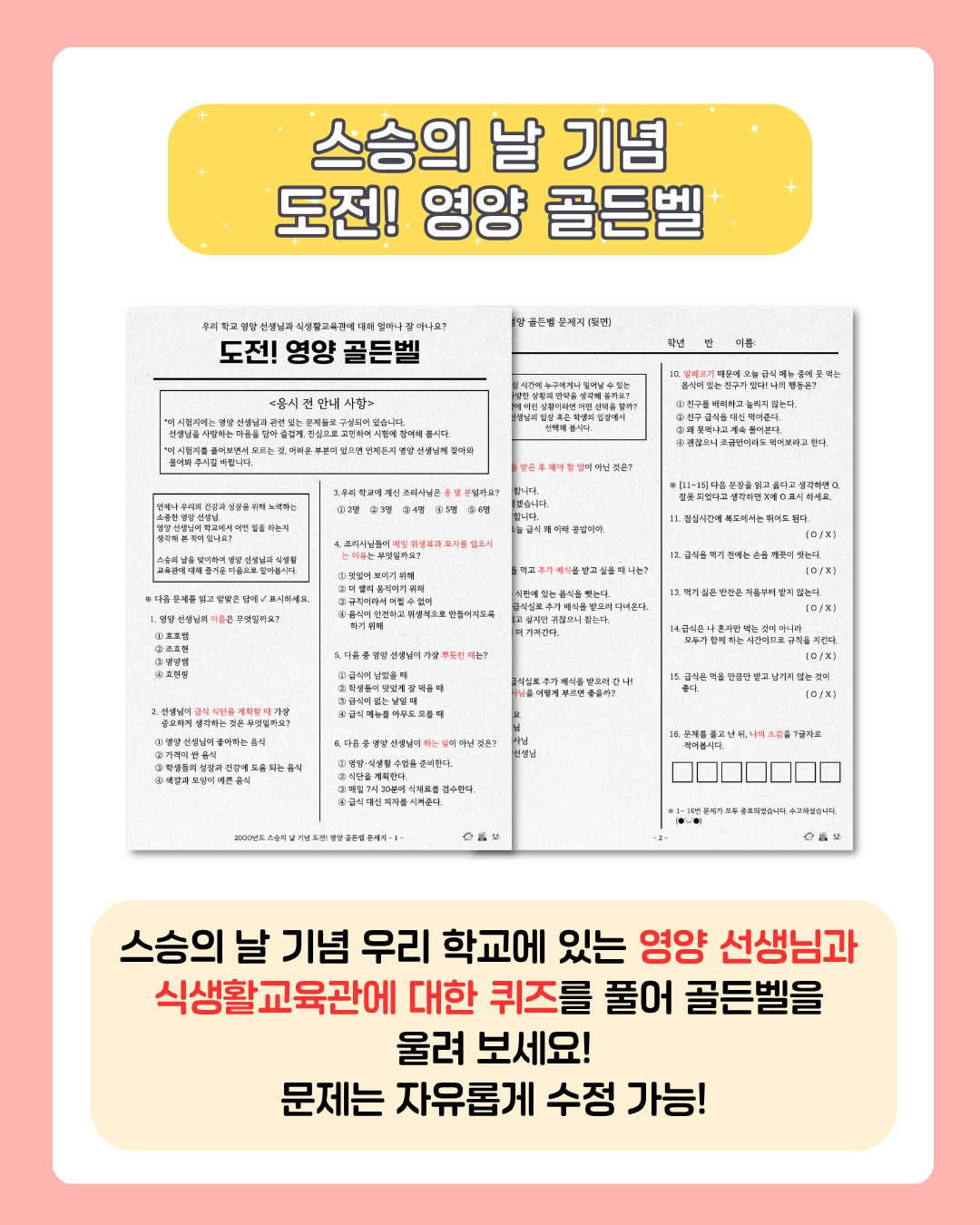 🏆 스승의 날엔 도전! 영양골든벨로 우리 학교 영양 선생님과 친해지고