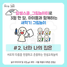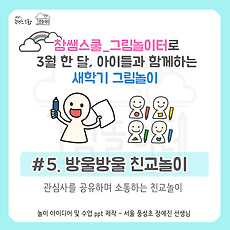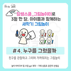 참쌤스쿨 그림놀이터22 [그림놀이터]3월 한달_ 새학기 그림놀이 #2. 너와 나의 집은 다양한 반에 여러 모습으로 변형되어 적용되는 그림놀이들이 궁금하기도 하답니다~ 재미있게 적용된 그림놀이 사례들도 댓글로 함께 공유해주세요~!! 선생님들!! 남은 3월도 힘내자구요~^^ 저희 그림놀이터는 이번주 목요일에 세번째 그림놀이 들고 다시 돌아올게요~ 그럼 이만! 다운로드 : https://blog.naver.com/playwithdrawing_cs/221226726375 2024. 1. 17. [참쌤스쿨_그림놀이터]3월 한달_ 새학기 그림놀이 #7. 그림 텔레파시 다운로드 : https://blog.naver.com/playwithdrawing_cs/221239674965 2024. 1. 17. [참쌤스쿨_그림놀이터]3월 한달_ 새학기 그림놀이 #6.그.땅.따 놀이 내일!! 바로바로 내일!! 그림놀이터의 댓글이벤트가 공개됩니다~! ^^ 적용 후 후기나 팁 공유 댓글 많이많이 부탁드려요~ 다운로드: https://blog.naver.com/playwithdrawing_cs/221237197706 2024. 1. 17. [참쌤스쿨_그림놀이터]3월 한달_ 새학기 그림놀이 #5. 방울방울 친교놀이 조만간 댓글 이벤트도 준비중이니 새학기 그림놀이를 반에서 해보신 선생님들은 변형해서 적용한 후기나 꿀팁을 댓글로 공유 부탁드려요~^^ 다운로드: https://blog.naver.com/playwithdrawing_cs/221234334313 2024. 1. 17. [그림놀이터]3월 한달_ 새학기 그림놀이 #4. 누구를 그렸을까 선생님들께 드리는 새학기 네번째 그림놀이선물 " 누구를 그렸을까 " 였습니다~! 반에서 활용해보시고 학생들과 함께 즐거운 학급 운영해보시기 바래봅니다!^^ 오늘도 화이팅!! 다운로드: https://blog.naver.com/playwithdrawing_cs/221231754183 2024. 1. 17. [그림놀이터]3월 한달_ 새학기 그림놀이 #3. 스피드 친구왕 오늘은 세번째 그림놀이를 소개해드릴 날이지요!~^^ 오늘 소개드릴 새학기 그림놀이는! #3. 스피드 친구왕 이라는 그림놀이입니다! 이번 놀이를 통해 스쳐지나기만했던 친구의 얼굴들을 머릿 속에 오랫동안 떠올릴 수 있을 것같네요!!>. 2024. 1. 17. [그림놀이터]3월 한달_ 새학기 그림놀이 #1. 나로말할 것 같으면 1. 새학기 그림놀이 --> 수업시간에 학생들에게 놀이를 안내하실 때 쓸 수 있도록 만들었습니다. (*참고: 맨 뒷페이지 tip부분은 학생들에게 따로 안보여 주셔도 되는 내용입니다.^^) 2. 놀이판과 함께 첨부해드리니 놀이판을 양면인쇄하여 쓰시면 됩니다. 다운로드 : https://blog.naver.com/playwithdrawing_cs/221224031588 2024. 1. 17. (이벤트 당첨자 발표) 다함께놀자 그림놀이터 도서출판기념 이벤트 당첨자 발표! * 다 함께 놀자 그림놀이터 책 출판 기념 이벤트 당첨자를 발표합니다*결과 발표가 늦어져서 죄송합니다..ㅠ어느 하나 고르기가 힘들어서 그랬어요...ㅠ 기프티콘 줄 다섯분 드리려다 뺄 사람 고르기 힘들어서 여섯 분 드리기로 했습니다!굿즈도 한 분에서 두 분으로 드리기로 했습니다!위 당첨자 분들에게는 개인별로 연락드리고 선물 보내드렸습니다^^이벤트 참여해 주신 모든 분들께 감사드립니다~! 2019. 5. 18. 다 함께 놀자 그림놀이터 도서 중 그림마피아 놀이 마피아 게임을 그림으로도 할 수 있다구요? 참쌤스쿨에서 개발한 그림놀이 모음집 50여개의 그림놀이가 수록되어 있습니다. 이미지 중심의 게임 설명방식으로 누구나 쉽게 이해할 수 있습니다."다 함께 놀자 그림놀이터" 와 함께 해보세요~! 그림실력 상관 없이 누구나종이 한장으로 재미있는 놀이가 가능하답니다. 전국 각지 서점, 인터넷 서점에서구매 가능합니다. http://www.yes24.com/Product/Goods/71382000?scode=032&OzSrank=1 2019. 4. 4. [다 함께 놀자 그림놀이터]도서 출판기념 인스타 이벤트!! 💡[다 함께 놀자 그림놀이터] 도서 출판기념 인스타 이벤트!!💡 너무너무 좋음을 말로 다 할 수 없는 그림놀이터의 도서 "다 함께 놀자 그림놀이터"!나만 알고 있긴 아쉽죠. 그래서 준비한 이벤트입니다!이벤트는 인스타그램에서 참여하실 수 있습니다. 딱 세 단계만 거치면 응모 완료!하나.👉🏻 구매하신 책을 들고 찍은 사진에 친구3명 태그하기!둘.👉🏻 해시태그로 #그림놀이터#다함께놀자그림놀이터#학급운영#놀이책 #참쌤스쿨 #참쌤스쿨_그림놀이터셋.👉🏻 계정은 공개계정이어야 합니다!(이벤트 참여 확인을 위하여) 😘 선물은 프랜차이즈 커피 기프티콘 5명😏 정성가득 담긴 후기는 참쌤스쿨 에듀박스에서 만든 굿즈를!!! 👉🏻이벤트 기간은 4월28일까지입니다! 그때까지 많이 참여해주세요!♡♡ https://www.insta.. 2019. 3. 31. 다 함께 놀자 그림놀이터 책 출간 전국 서점, 인터넷 서점에서 판매중입니다! http://www.yes24.com/Product/Goods/71382000 2019. 3. 28. 그림놀이 오프라인 연수 안내 다양한 그림놀이를 한 자리에서 배울 수 있는 기회^.~!! 원격연수 촬영에 동의하시는 선생님들을 선착순 25분 모집합니다. 신청을 원하시는 분은 홍보물에 있는 연락처로 연락 부탁드립니다! 마감되었습니다^^ 많은 관심 감사합니다! 아쉽게 기회를 놓치신 분들은 원격 연수로 만나요! 2019. 2. 18. [그림놀이터]PPT로 우리 반 캐릭터 만들고 학급운영에 활용하기! 첨부된 위 파일을 모두 다운받아 압축을 풀어주세요!캐릭터 만들기 파일은 아이들에게도 나누어주고 컴퓨터실에서 함께 만들기 활동을 할 수 있답니다.(배포용) 우리반 캐릭터 만들기 파일을 다운받아 ppt로 설